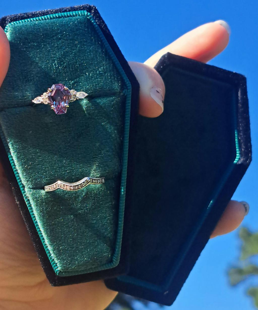 ►The use of alexandrite and moonstone, along with the choice of a coffin shape, adds to the distinctive and eye-catching nature of the ring. The use of solid sterling silver provides durability and a quality metal base for the gemstones. This kind of jewelry often appeals to those who appreciate individuality, creativity, and a touch of bohemian flair in their accessories.
