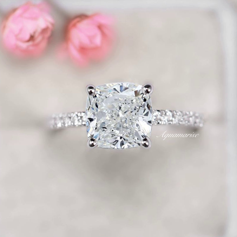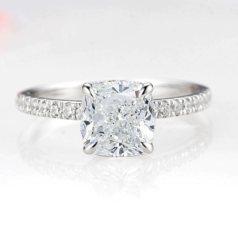 Cushion Cut Lab-Grown Diamond Engagement Ring- 14K White Gold (IGI Certified)