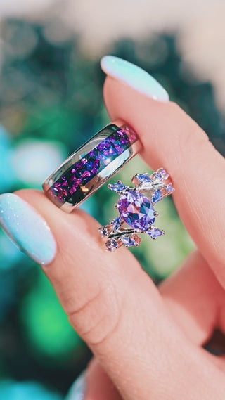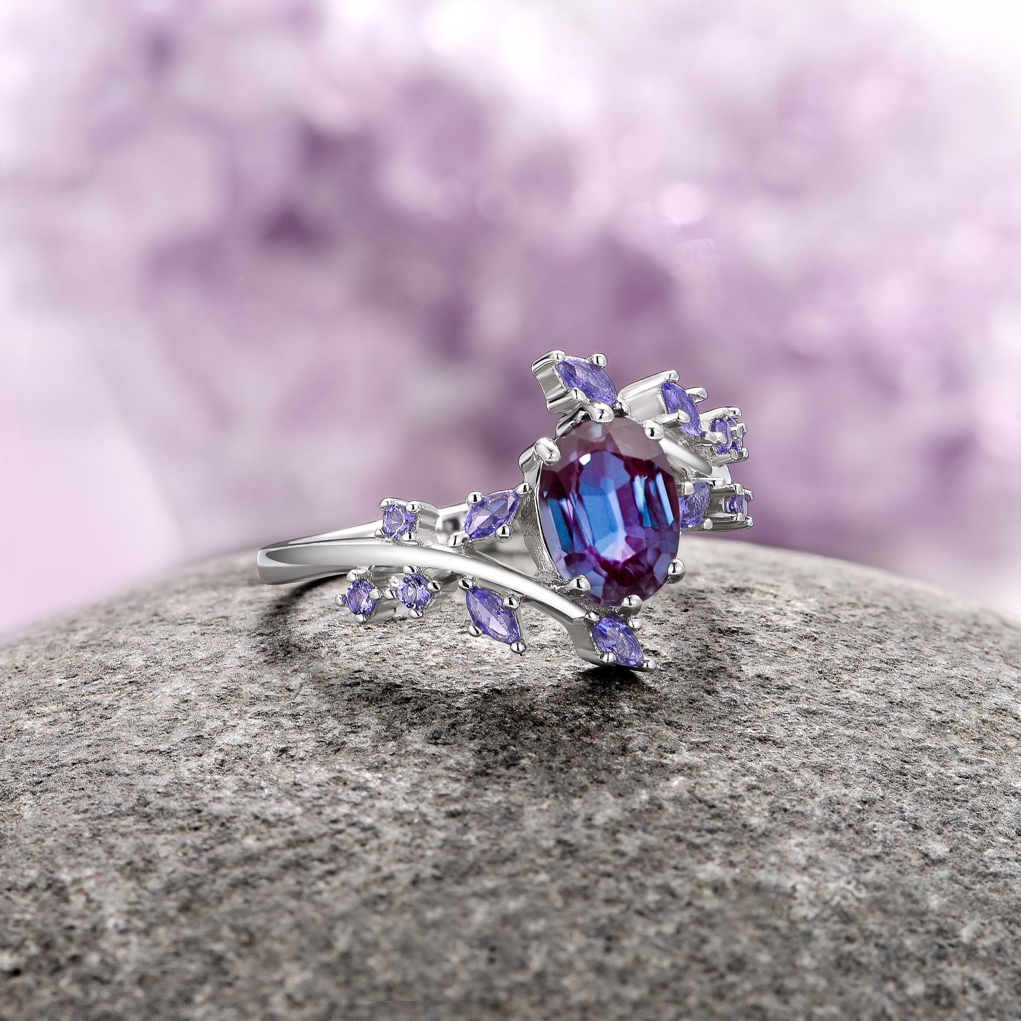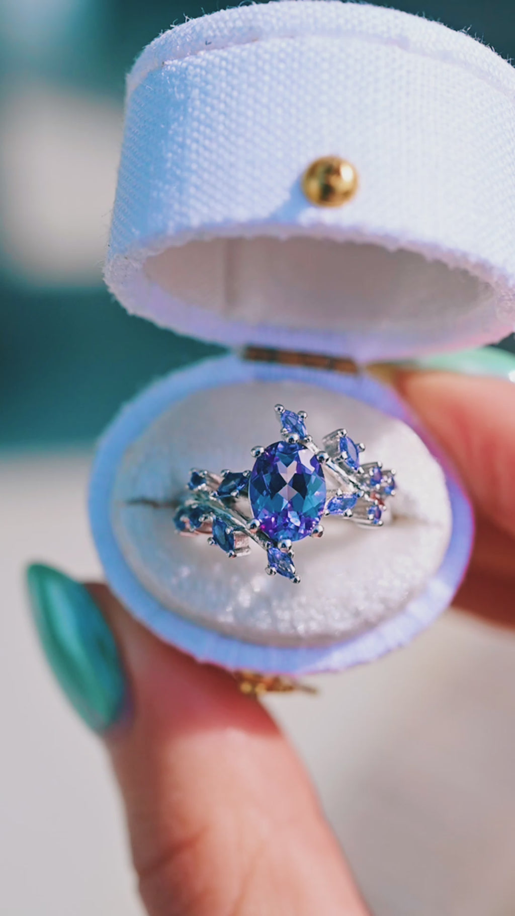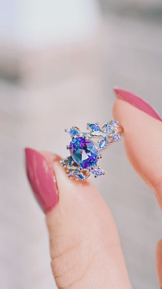 Alexandrite & Cornflower Sapphire Fairy Leaf Ring in Sterling Silver