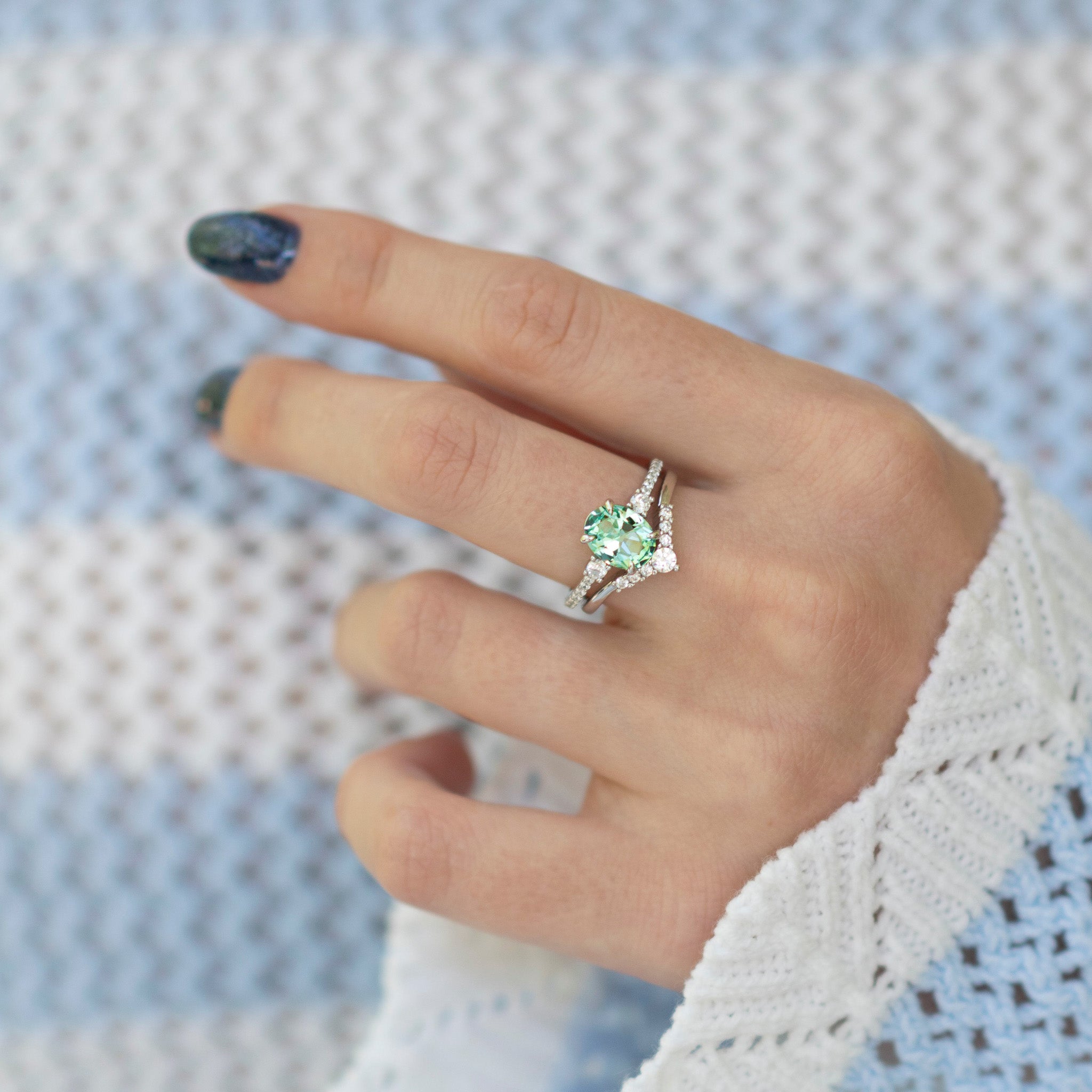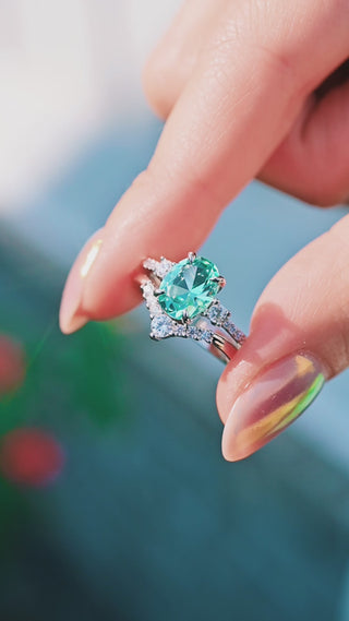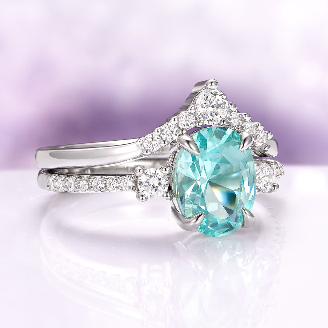 Bella Oval Teal Sapphire Ring Set in Sterling Silver
