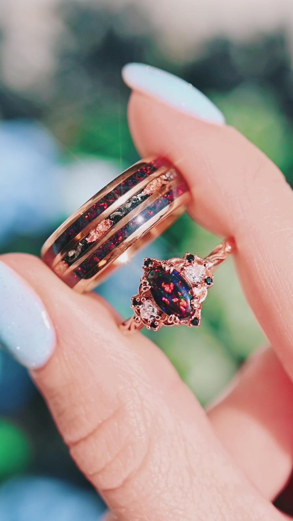 Esme Black Fire Opal & Meteorite Couples Ring Set