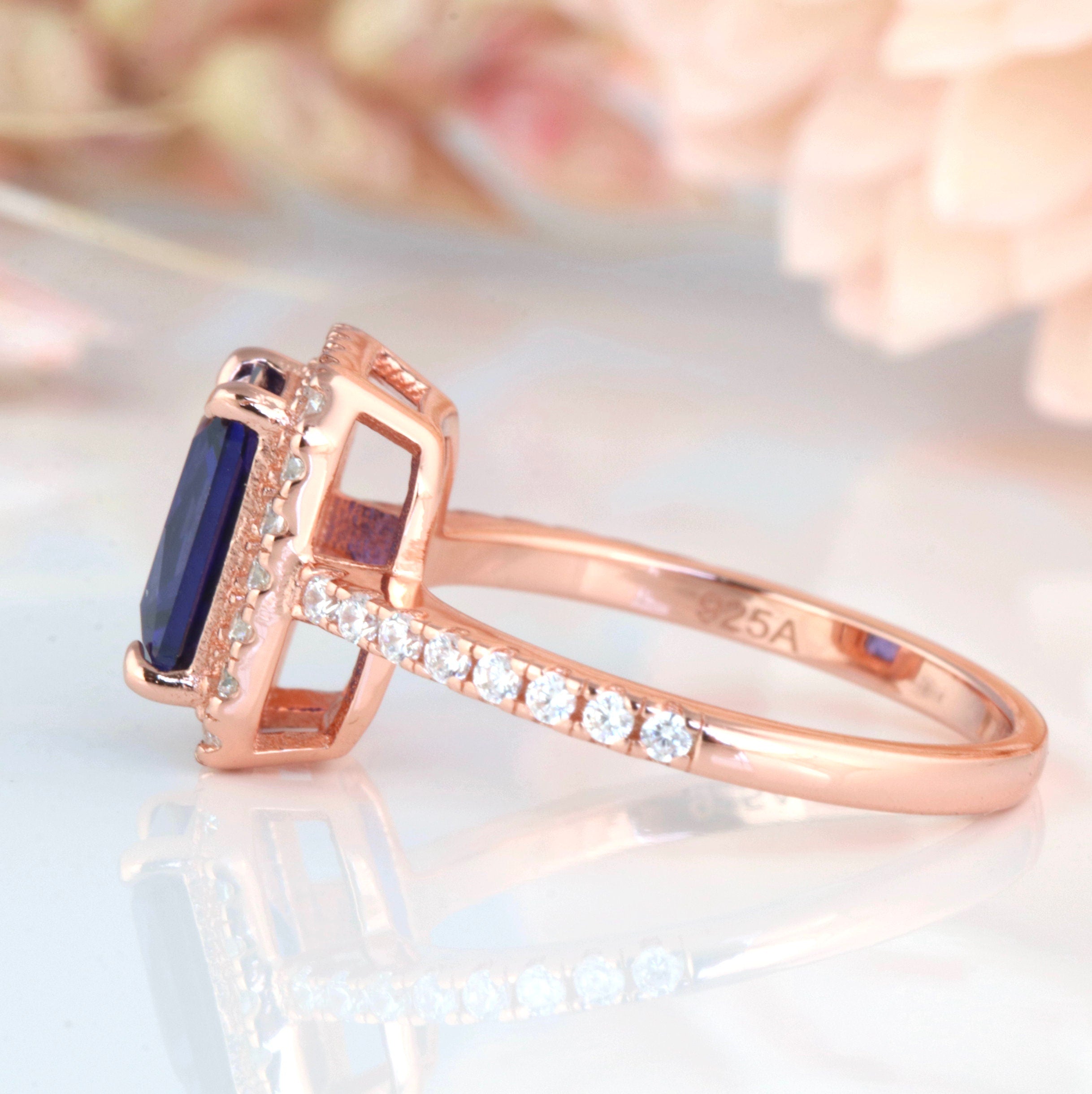 Love this ring!! Messaged seller, from whom I’ve purchased from this store before, asked for custom 1/2 size. $20 more, all good. Said it’d take an additional week. Item arrived MUCH ahead of schedule in perfect velvet box & personalized to shop tissue paper & purple envelope. Ring is lovely! Already wearing as a daily ring. Cool rose gold color. Sapphire is always a hit. Also, weird but cool, this shop showed up in my Instagram for you page and it is lovely. Follow definitely!