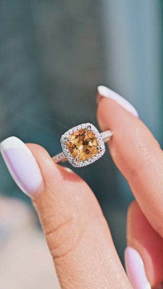 The cushion-cut citrine shines with a golden-yellow glow, symbolizing joy, abundance, and positive energy. Whether chosen as a thoughtful gift or a one-of-a-kind engagement ring, this piece is designed to be as durable as it is beautiful.