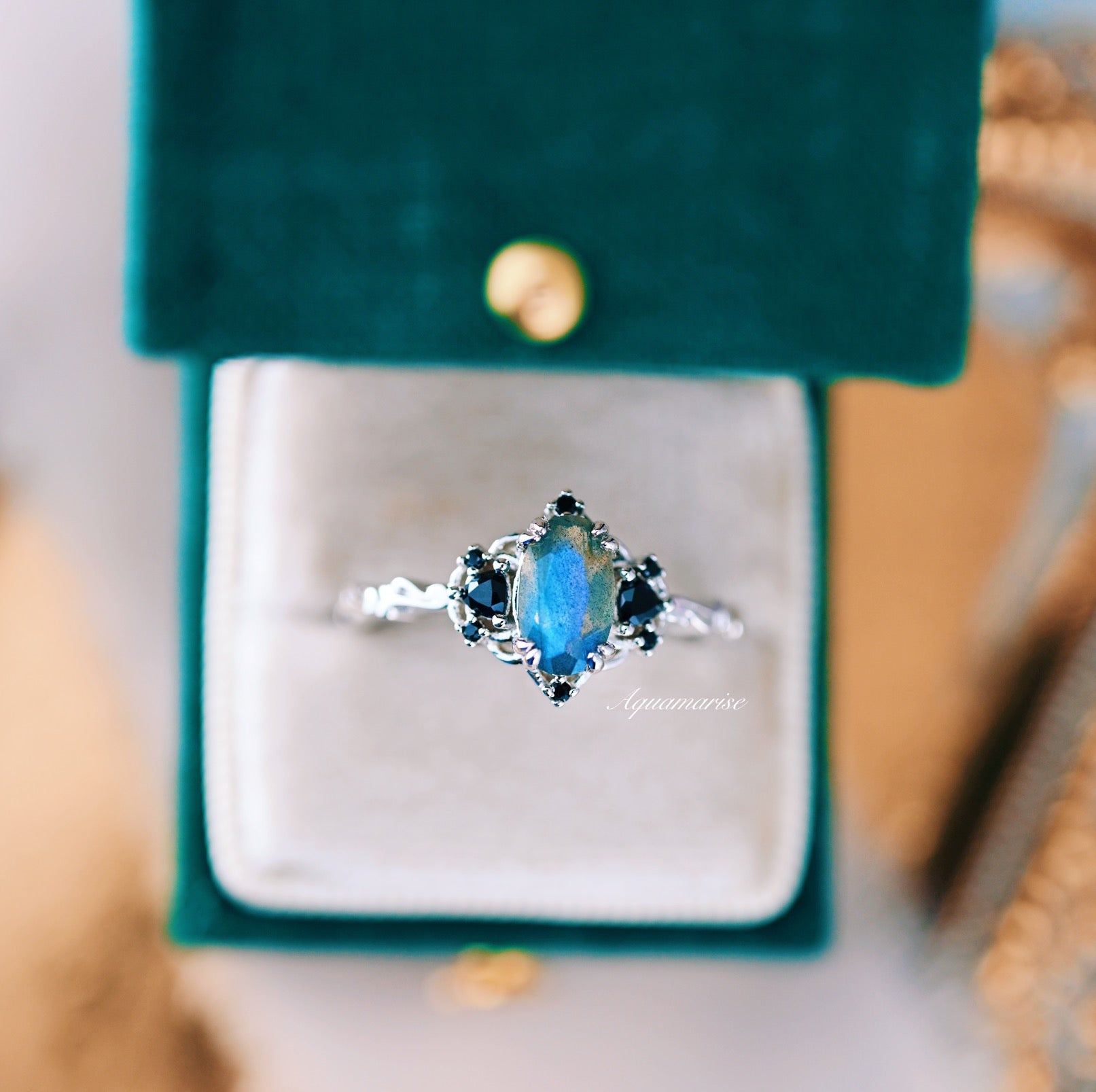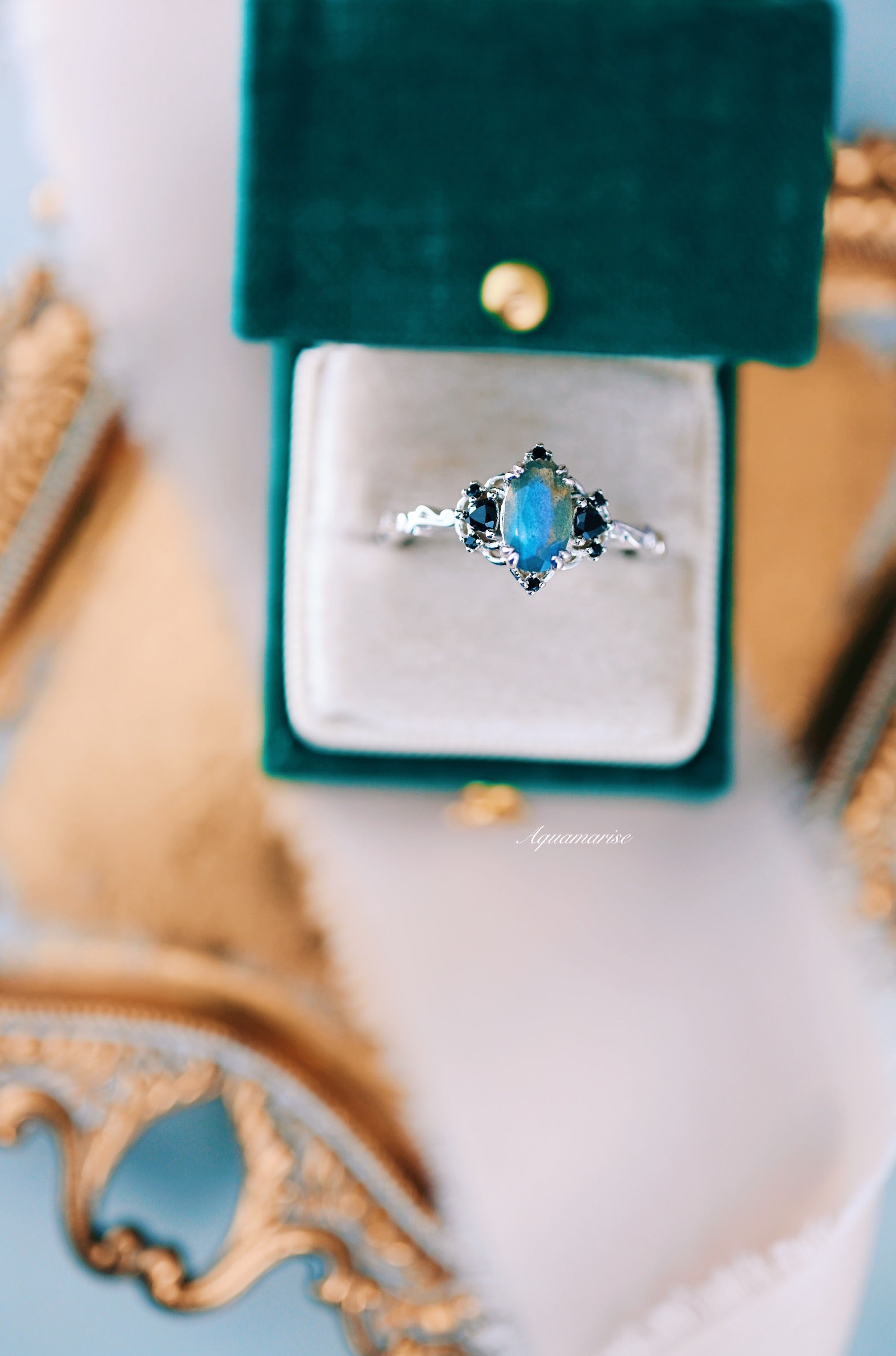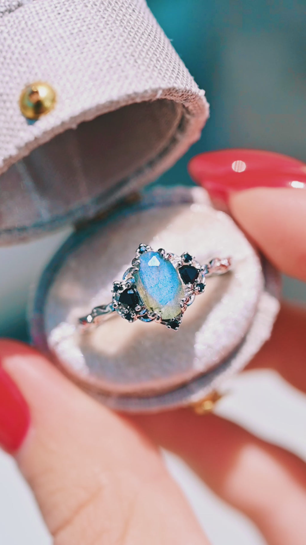 Such a beautiful ring! I was looking for something that mixed black with Labradorite and this fit the bill perfectly. I wear it daily on my pinky. Beautifully made, quality feel, so perfect.