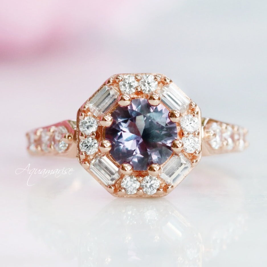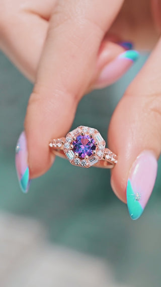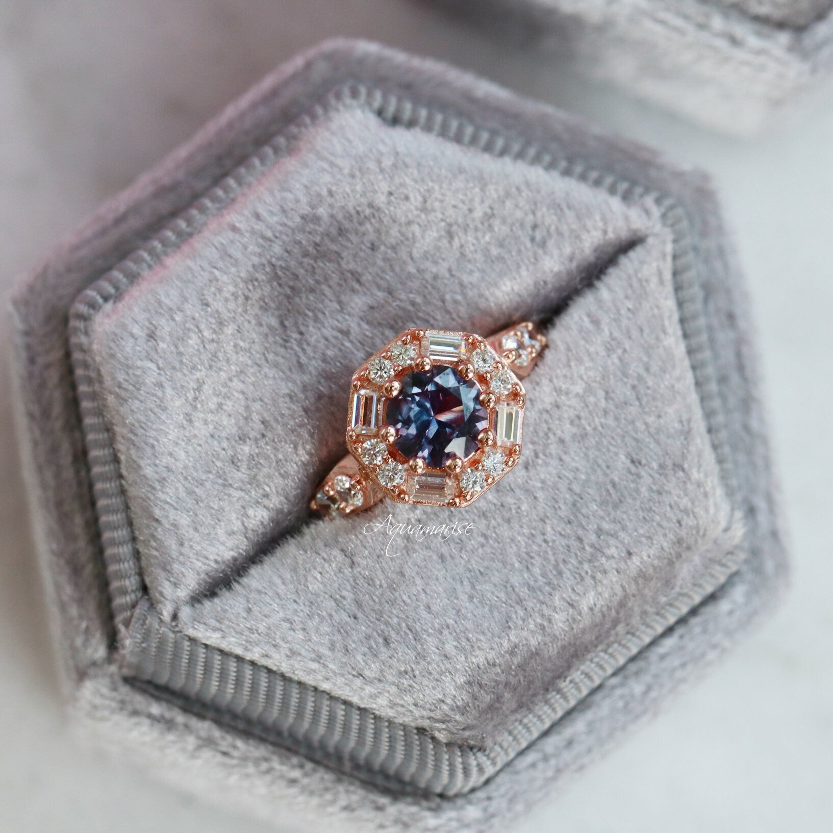 Octavia Hexagon Alexandrite Ring in 14K Rose Gold Vermeil