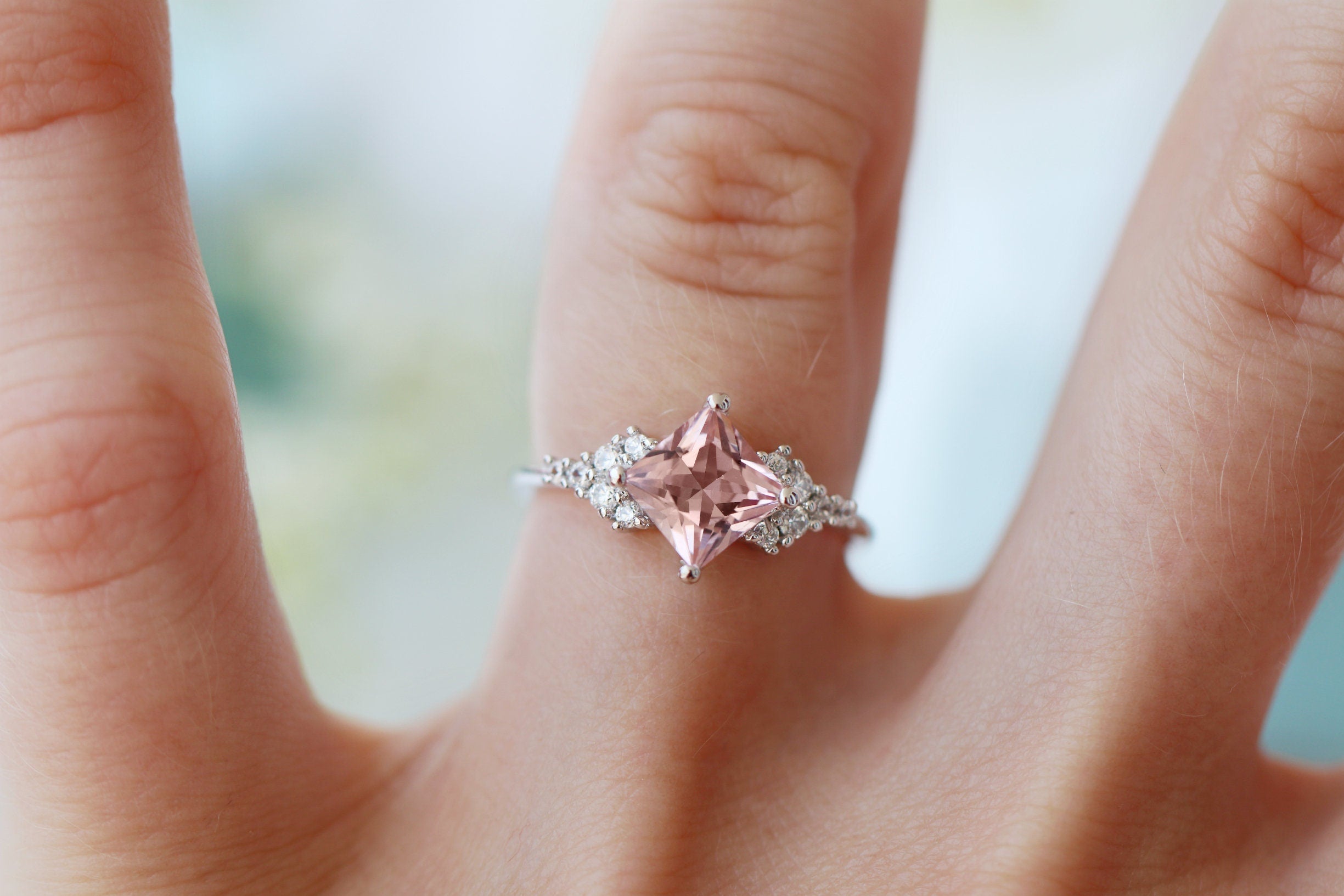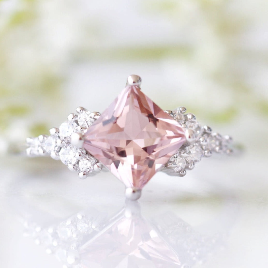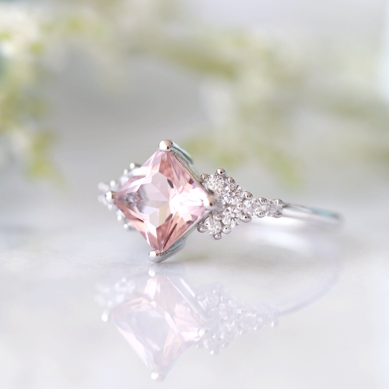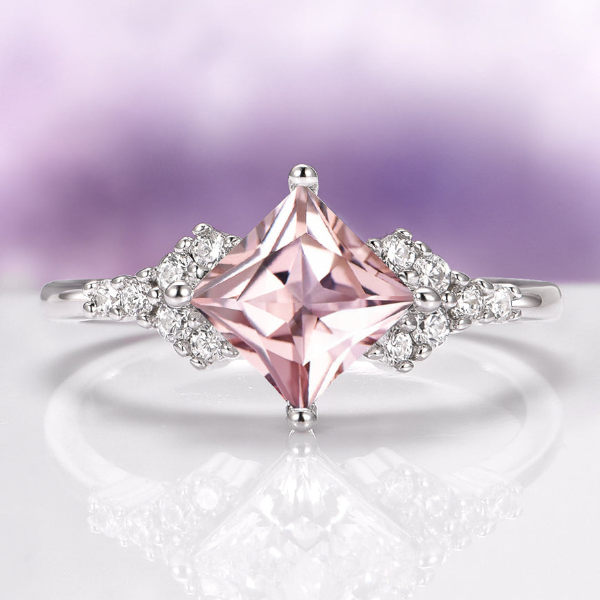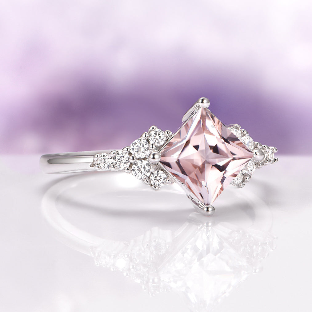 Ellie Princess Cut Morganite Engagement Ring in Sterling Silver