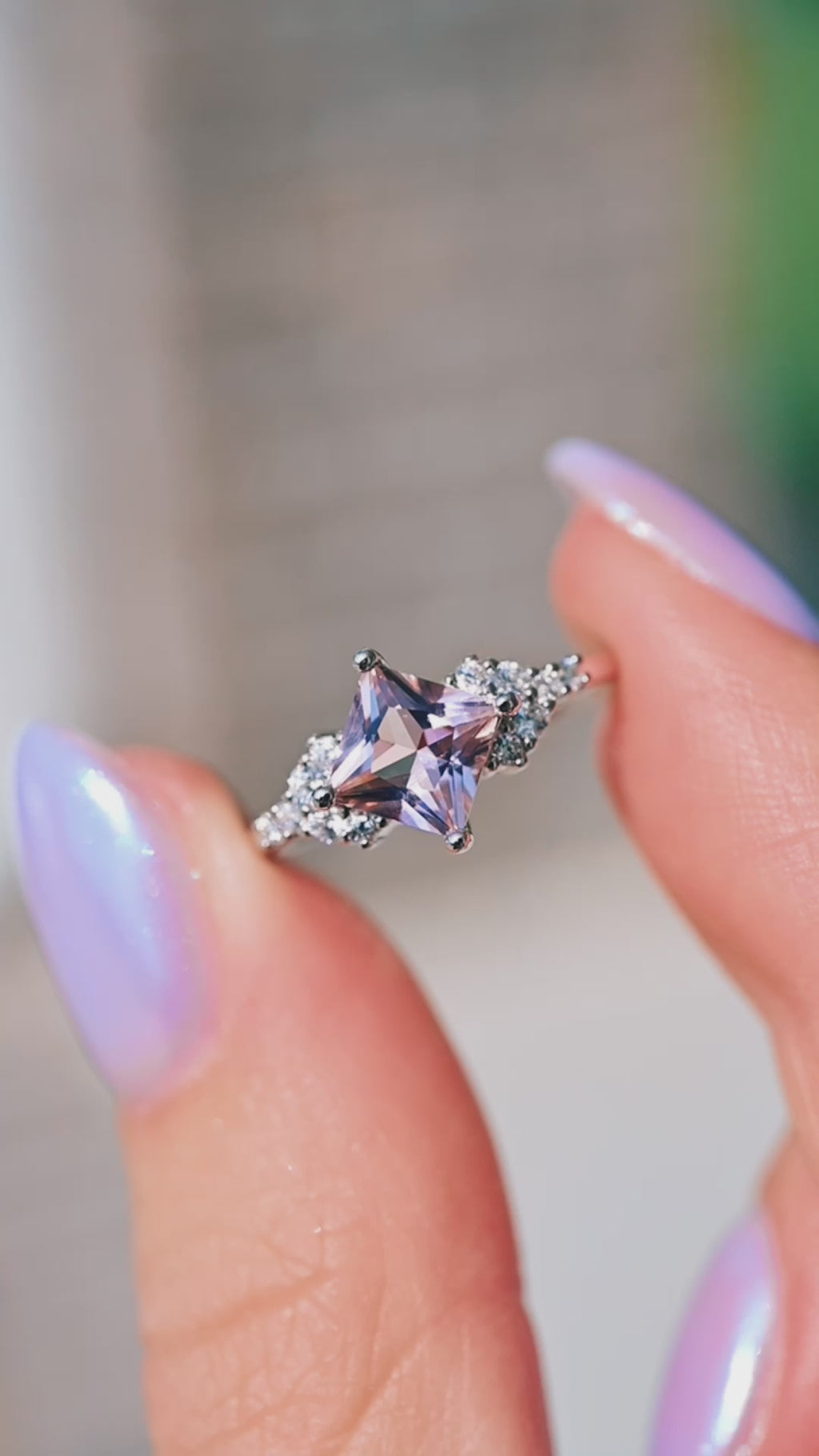 Beautiful piece of Princess cut Morganite! The color is such a sweet, soft pink and looks gorgeous on its silver setting.