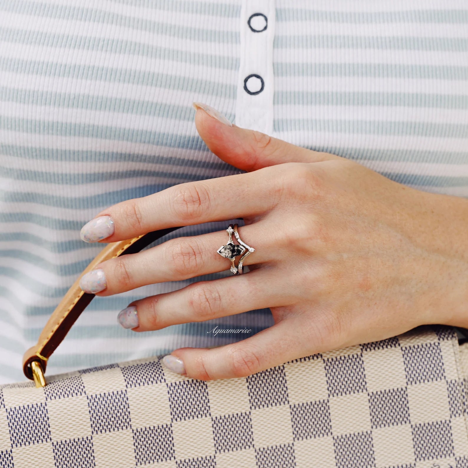 ►The Coffin Cut Ring Set is a true masterpiece, featuring two meticulously cut gemstones that stand as a testament to the beauty of natural materials. The focal point of each ring is a remarkable kite-shaped natural Rutilated Quartz gemstone. These ethereal gemstones, with their delicate, golden rutile inclusions, capture the essence of celestial beauty and impart an otherworldly quality to the rings.