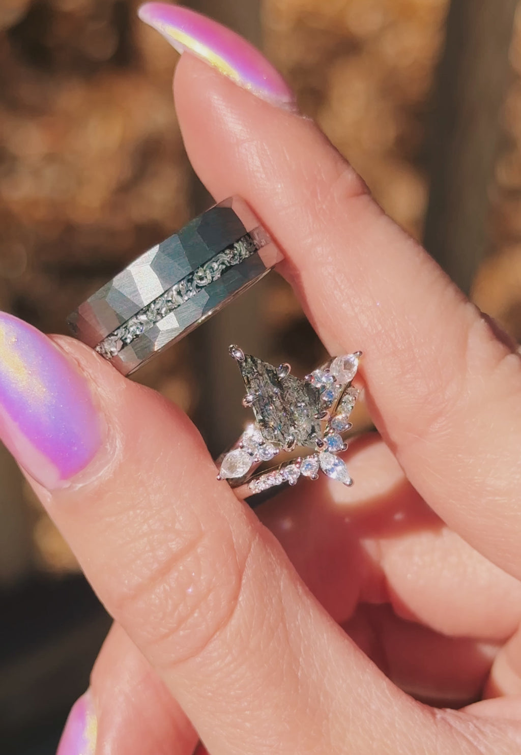 Skye Kite® Galaxy Salt & Pepper (Herkimer Diamond) and Meteorite Couples Ring Set