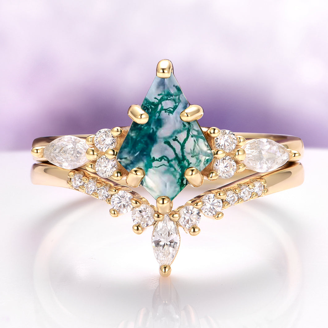 Skye Kite® Green Moss Agate & Whiskey Barrel Couples Ring Set