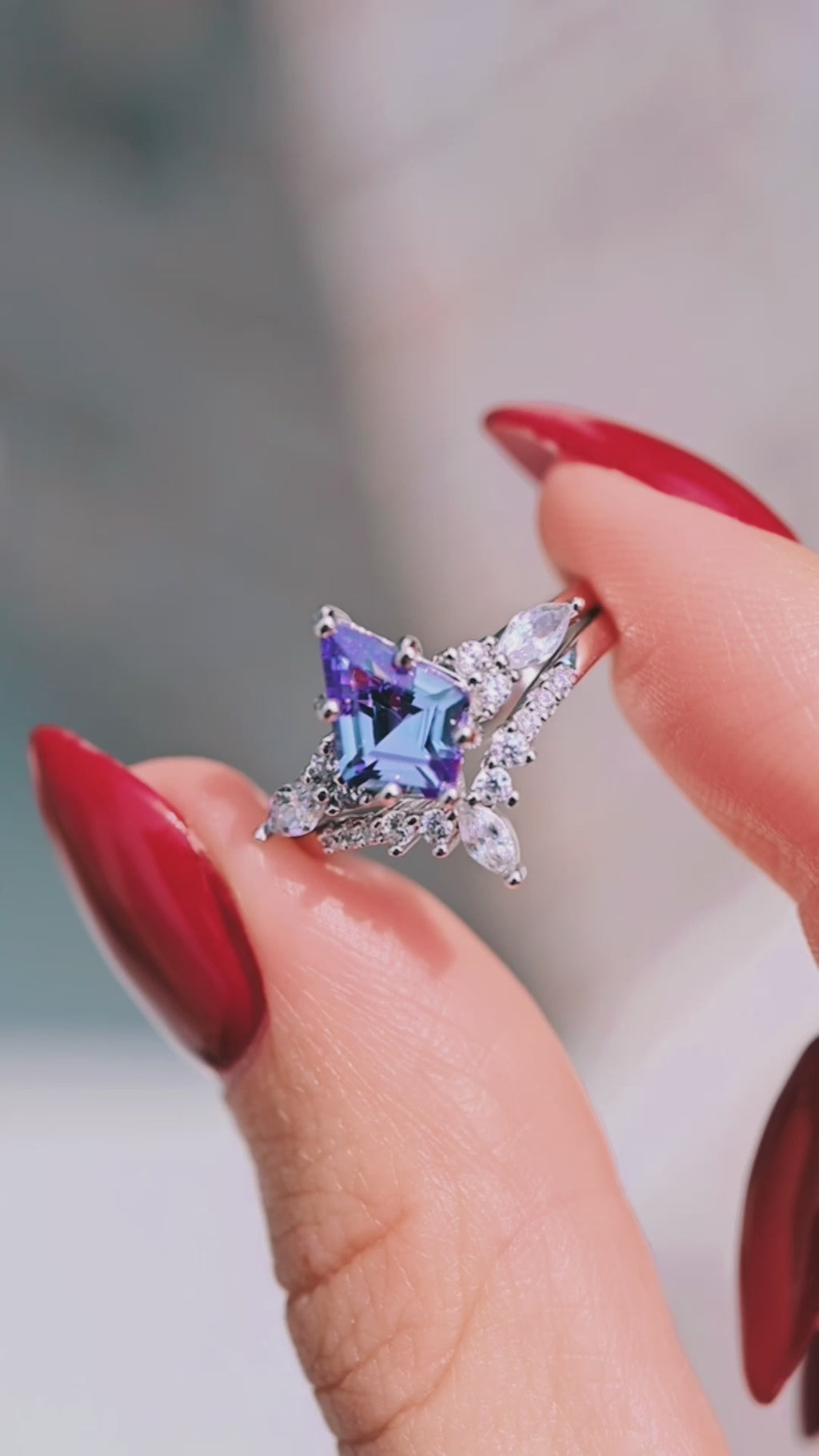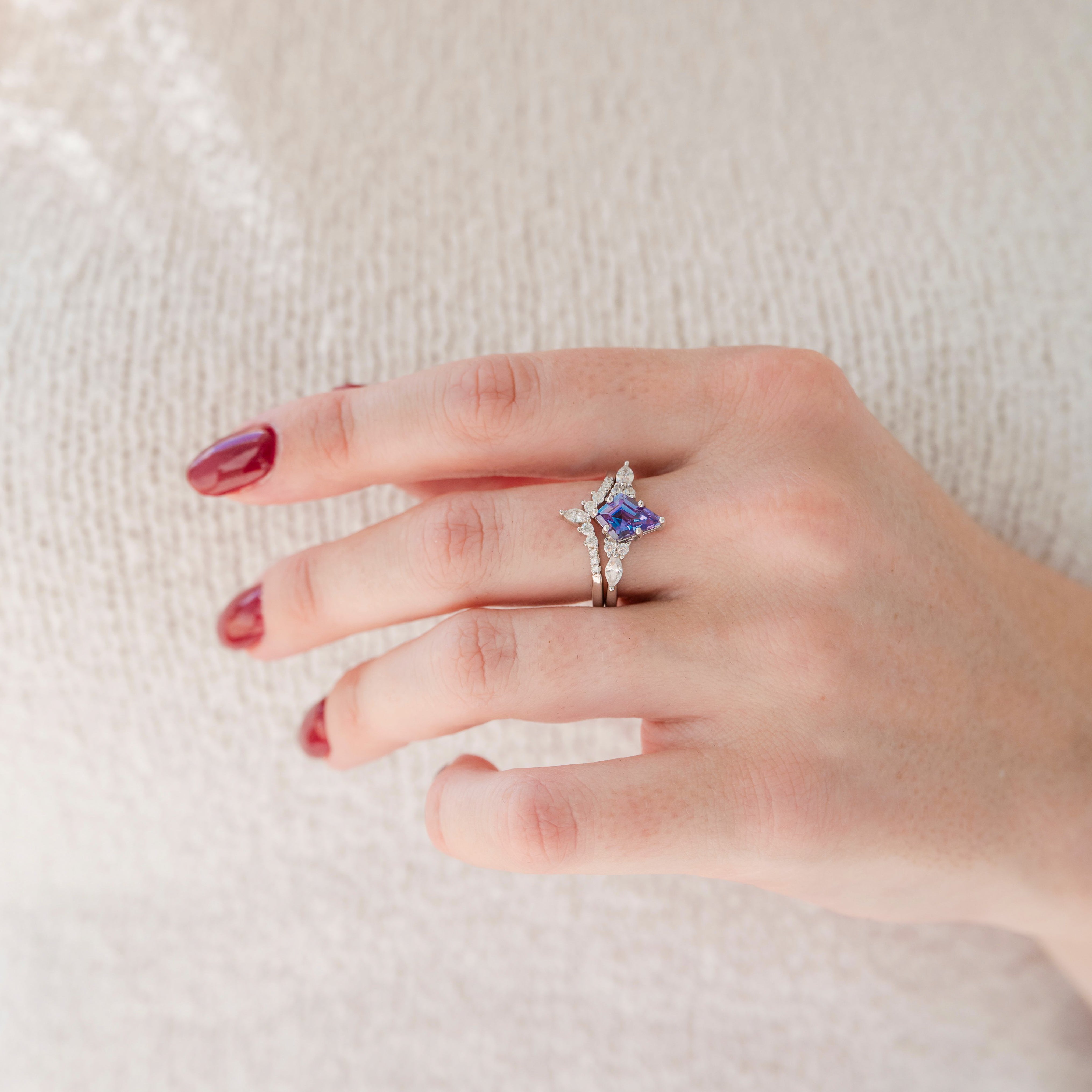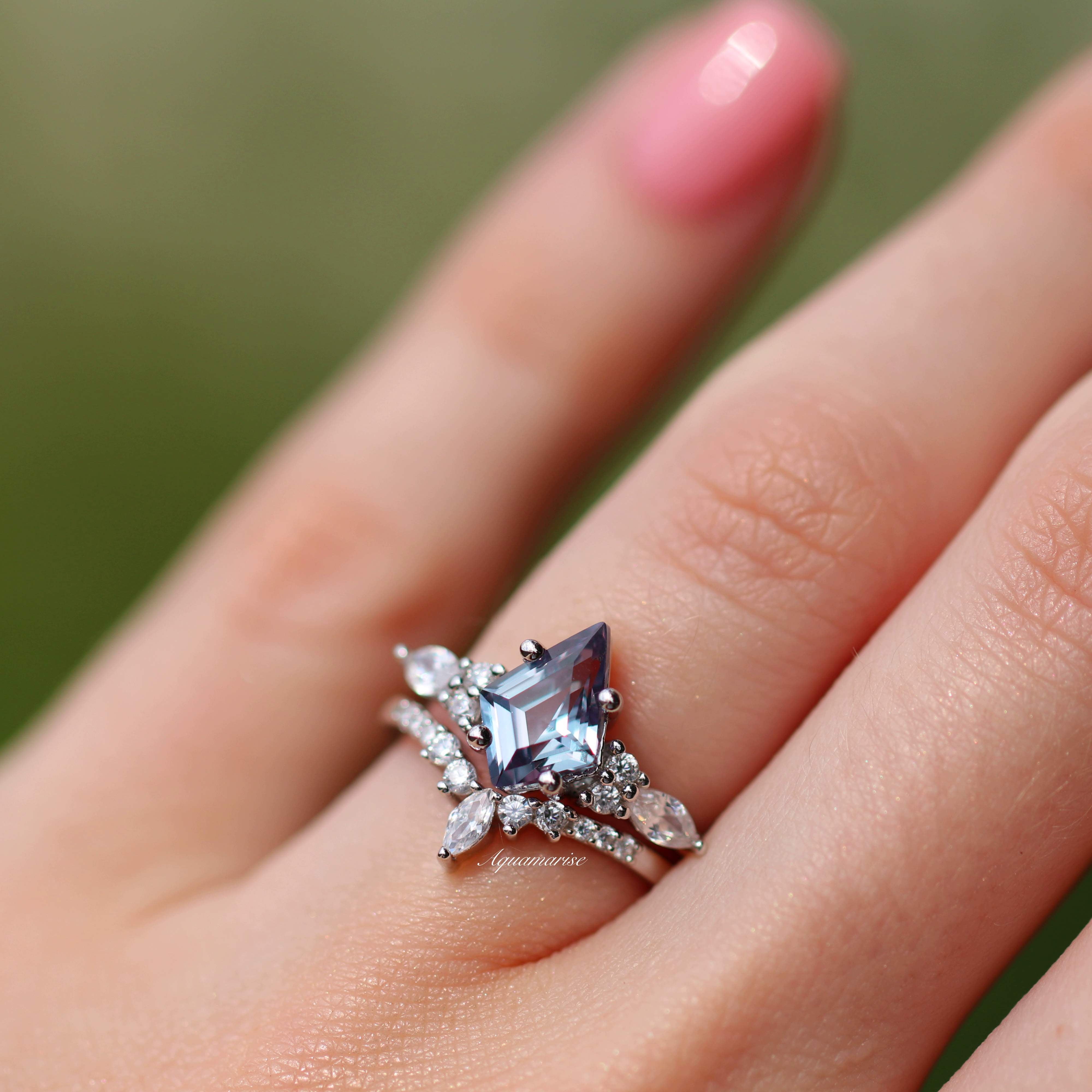 ► Sold as a Complete Set: Includes the kite Alexandrite ring and coordinating band, designed to be worn together or separately.