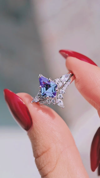 Make a timeless statement with this stunning vintage-inspired Alexandrite ring set, crafted in solid 925 sterling silver. Featuring a striking kite-shaped lab-created Alexandrite as the centerpiece, this set is the perfect blend of elegance, mystique, and meaningful symbolism.