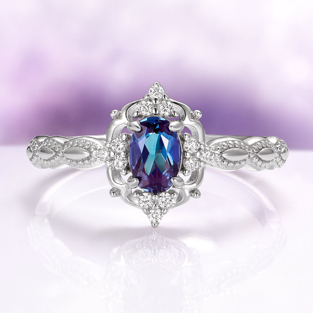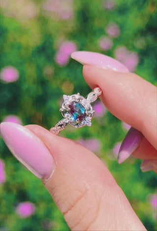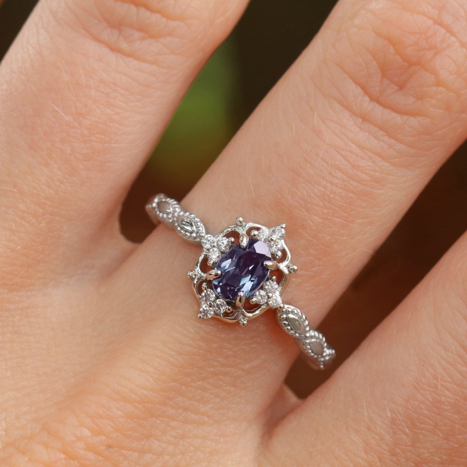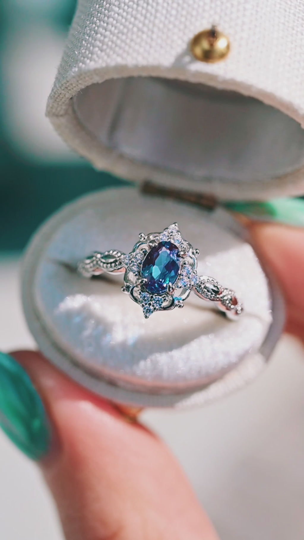 So beautiful the duel tones of the alexandrite in natural vs artificial lighting matches how we compliment each other.