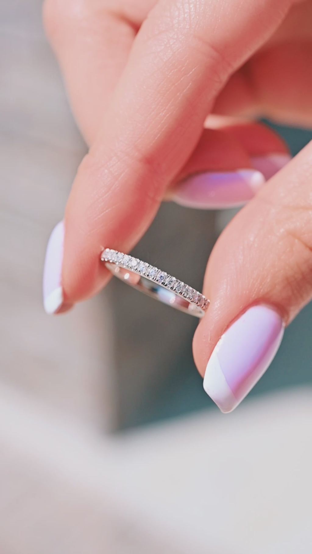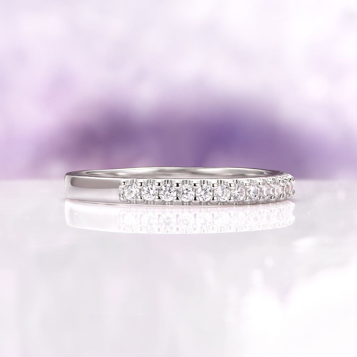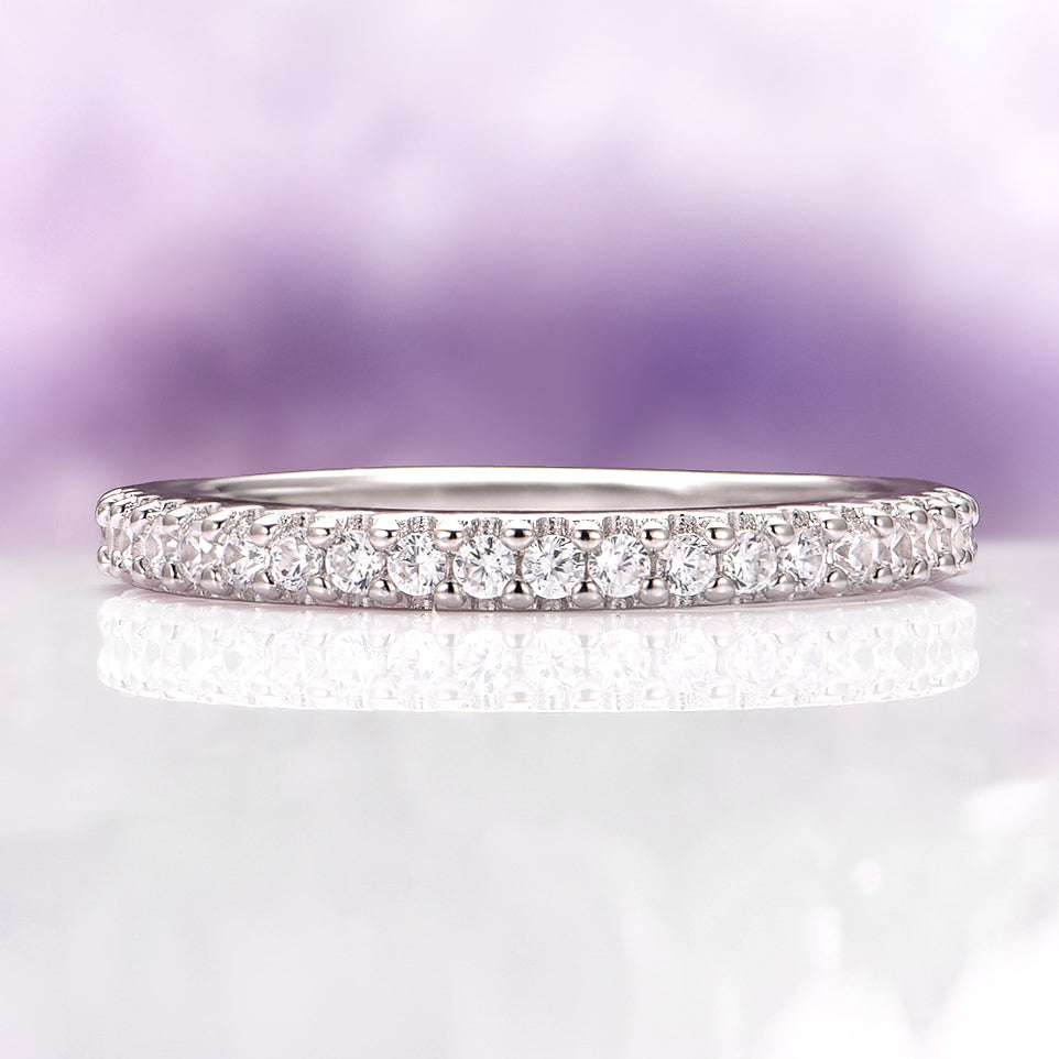 Minimalist Simulated Diamond Wedding Band in Sterling Silver (2mm)