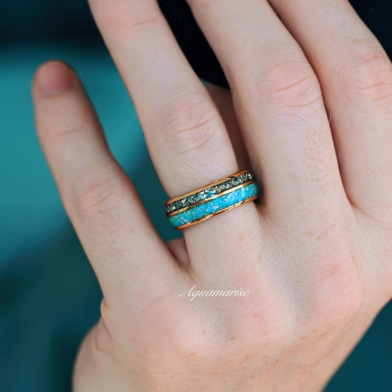 *Metal type: gold tungsten carbide with crushed blue fire opal and crushed diamond (cubic zirconia)