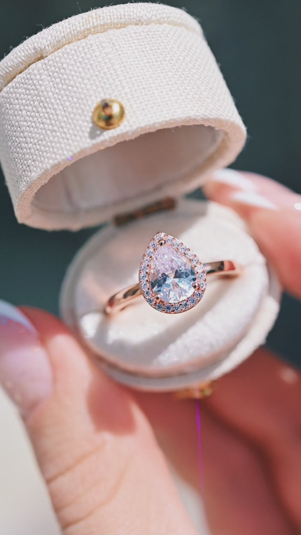 Elevate your love story with our Teardrop Diamond Engagement Ring in 14K Rose Gold Vermeil, a romantic design that blends timeless beauty with modern craftsmanship. Perfect as an engagement ring, promise ring, or wedding ring set, this pear-cut design makes a statement of elegance and devotion.