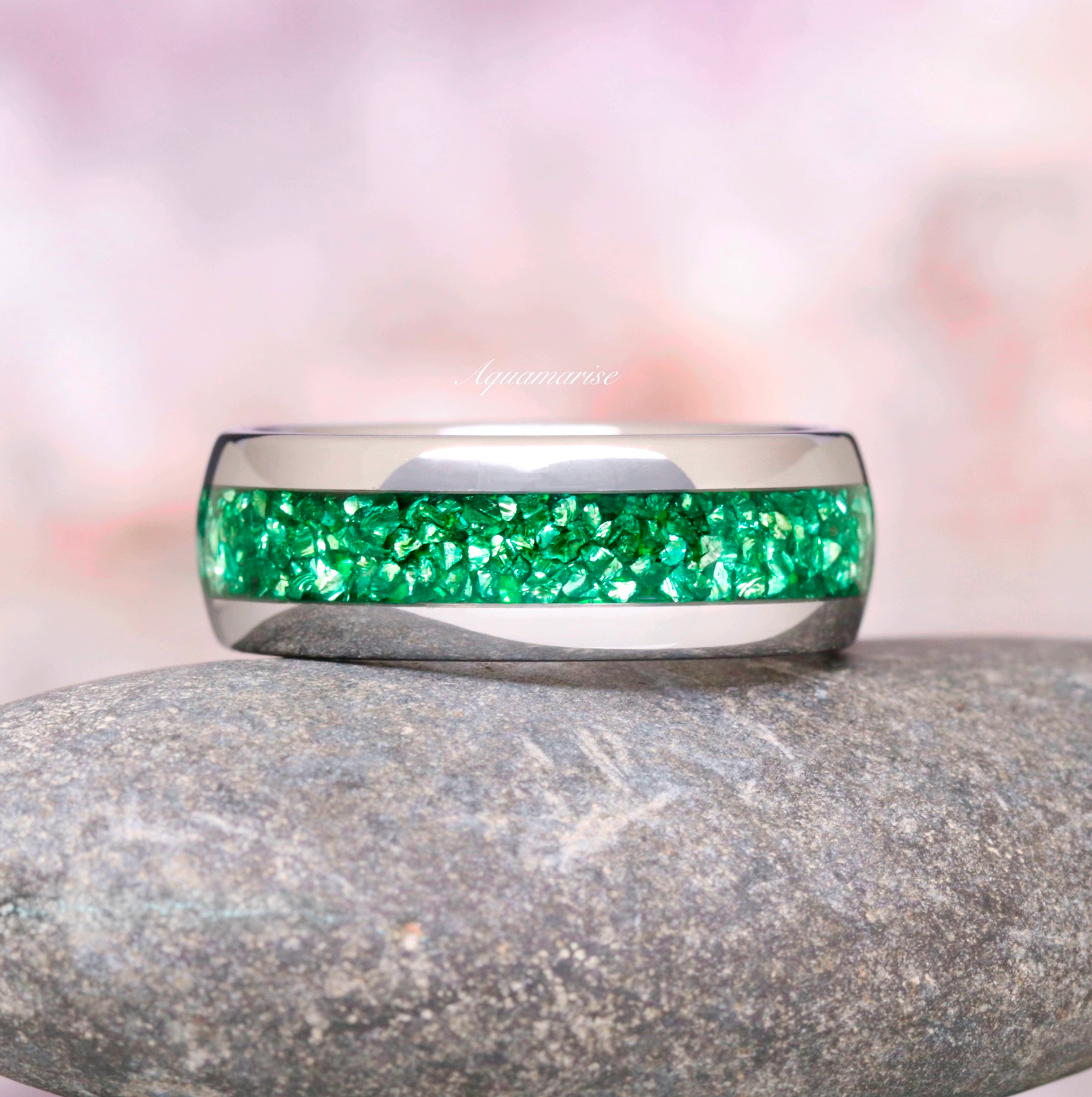 *Material: Tungsten Carbide with crushed emerald inlay.