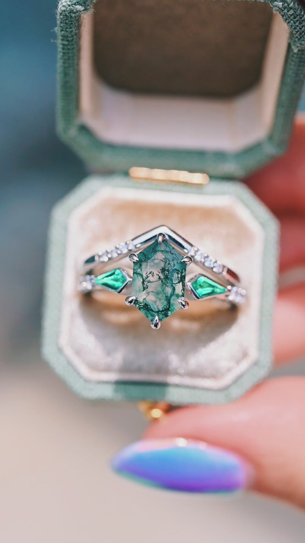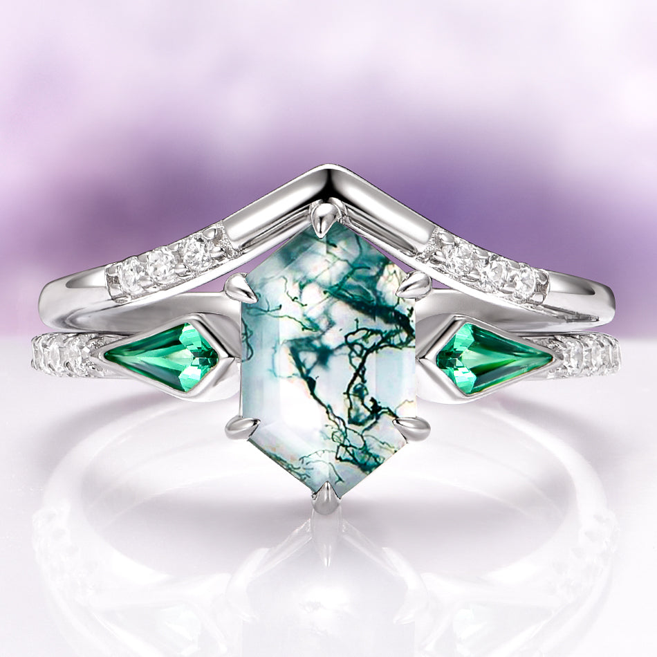 Northern Lights Woodland Couples Ring Set