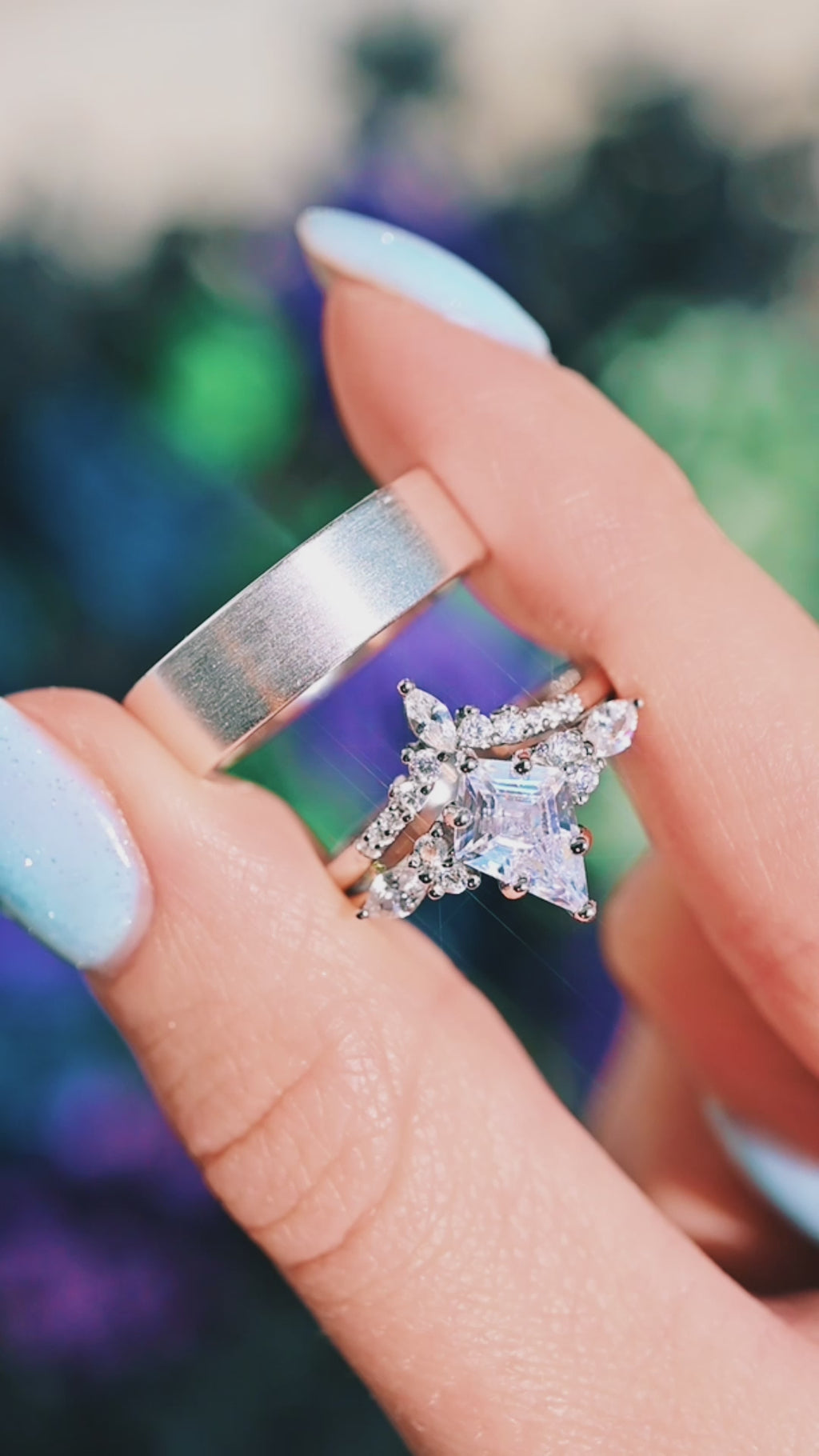 Introducing the exquisite Skye Kite Diamond Ring Couples Ring Set, a symbol of everlasting love and commitment. Crafted with precision and elegance, this set features His and Hers matching wedding bands meticulously fashioned from high-quality 925 Sterling Silver.