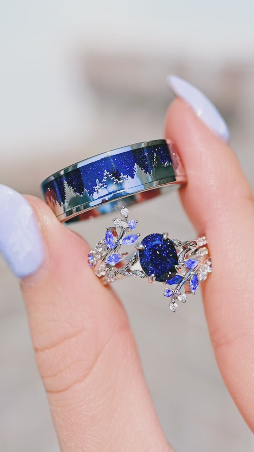 Starry Night & Trees Couples Ring Set