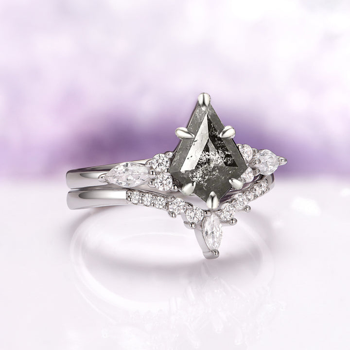 Skye Kite Cut Natural Herkimer Diamond (her ring) & Meteorite ring (his ring) Couples Ring Set, a stunning embodiment of timeless elegance and shared love. Crafted with meticulous attention to detail, this enchanting ring set is a symbol of connection, harmony, and the unique bond between two individuals.