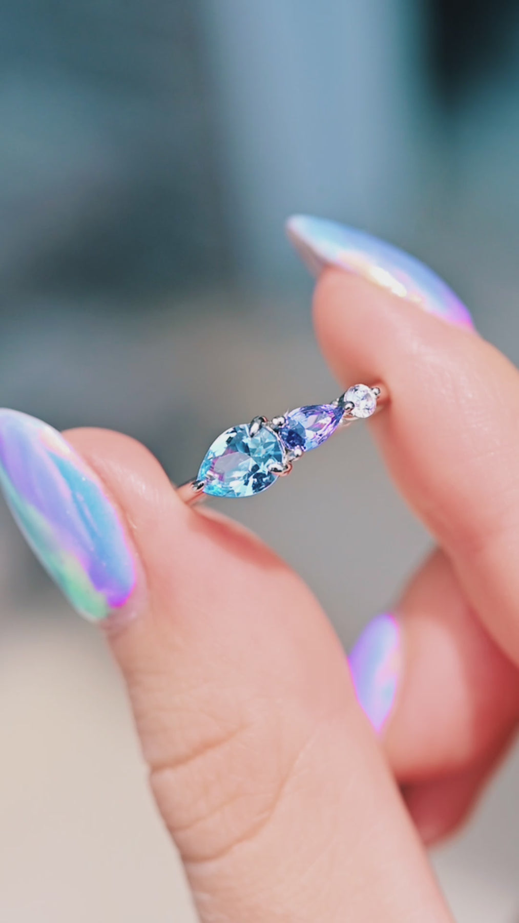 Teardrop Aquamarine & Tanzanite Ring in Sterling Silver