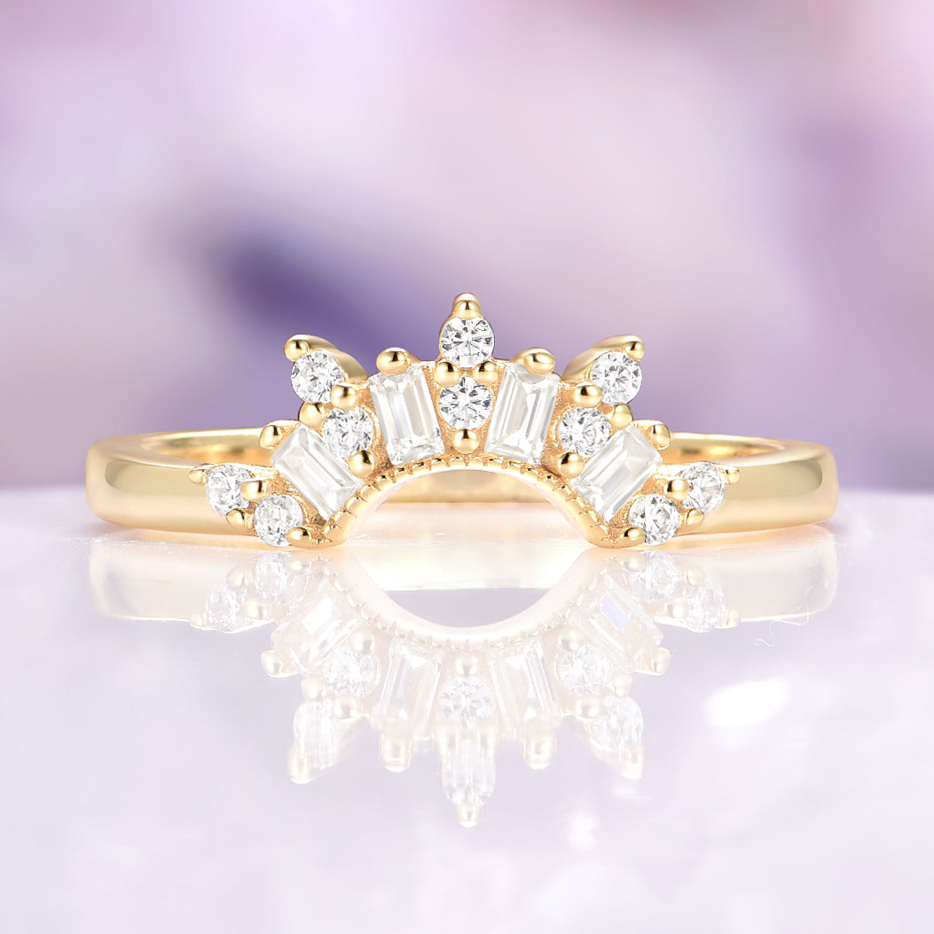 Lab Grown Diamond Crown Wedding Band in Solid 14K Yellow Gold