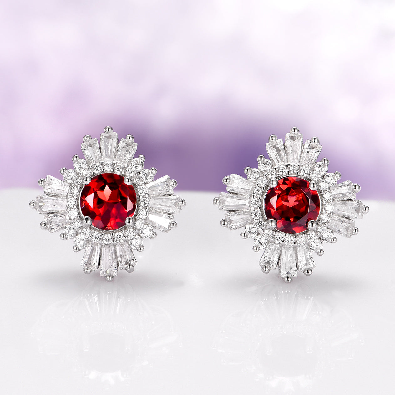 Joelle Natural Red Garnet Stud Earrings in Sterling Silver