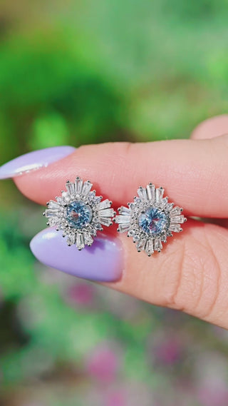 Add a touch of timeless elegance to your jewelry collection with these vintage-inspired aquamarine stud earrings, crafted in solid 925 sterling silver. Designed in a Gatsby-era Art Deco style, the Joelle earrings feature round lab-created aquamarine center stones, accented with shimmering simulated diamonds for extra sparkle. Lightweight and hypoallergenic, they make a stunning gift for birthdays, anniversaries, or bridal wear—especially for those born in March.