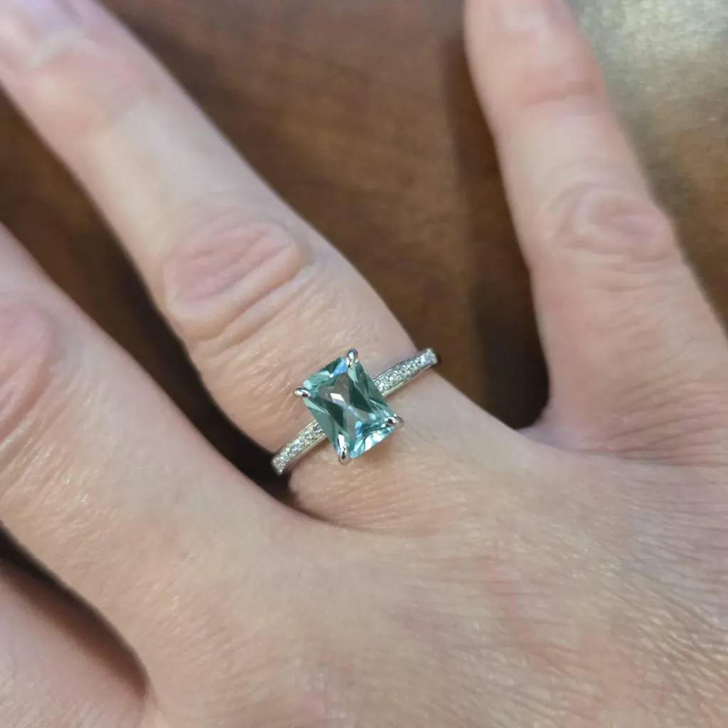 Ava Emerald Cut Mint Green Sapphire Ring in Sterling Silver