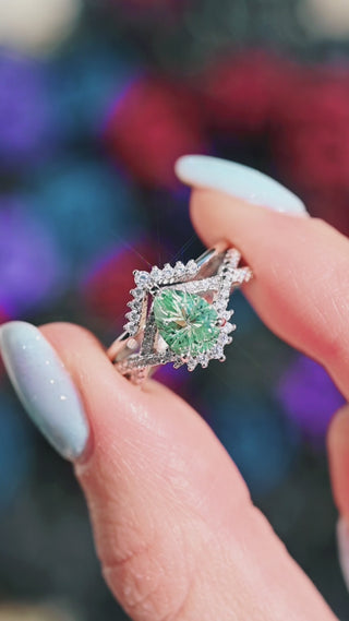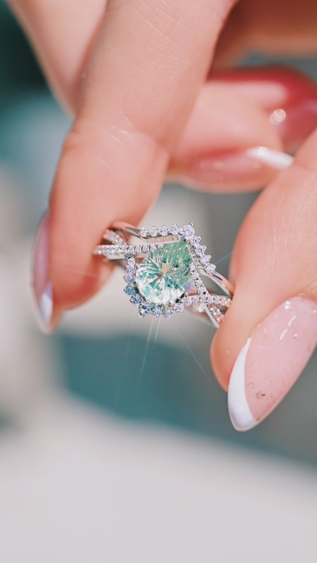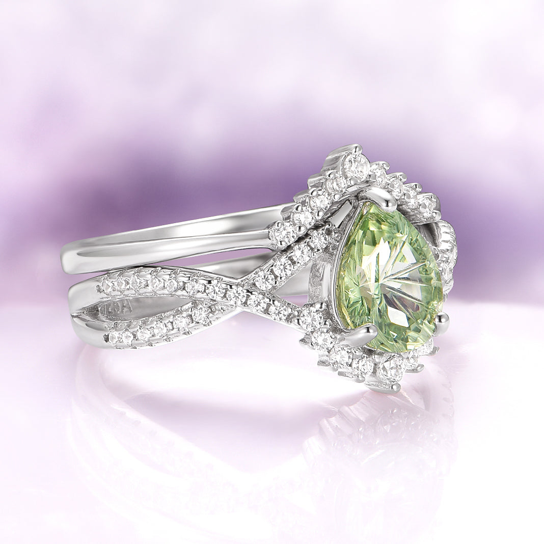 ►Capture the magic of your love story with this enchanting Light Green Sapphire Ring Set, a perfect blend of elegance and whimsy.