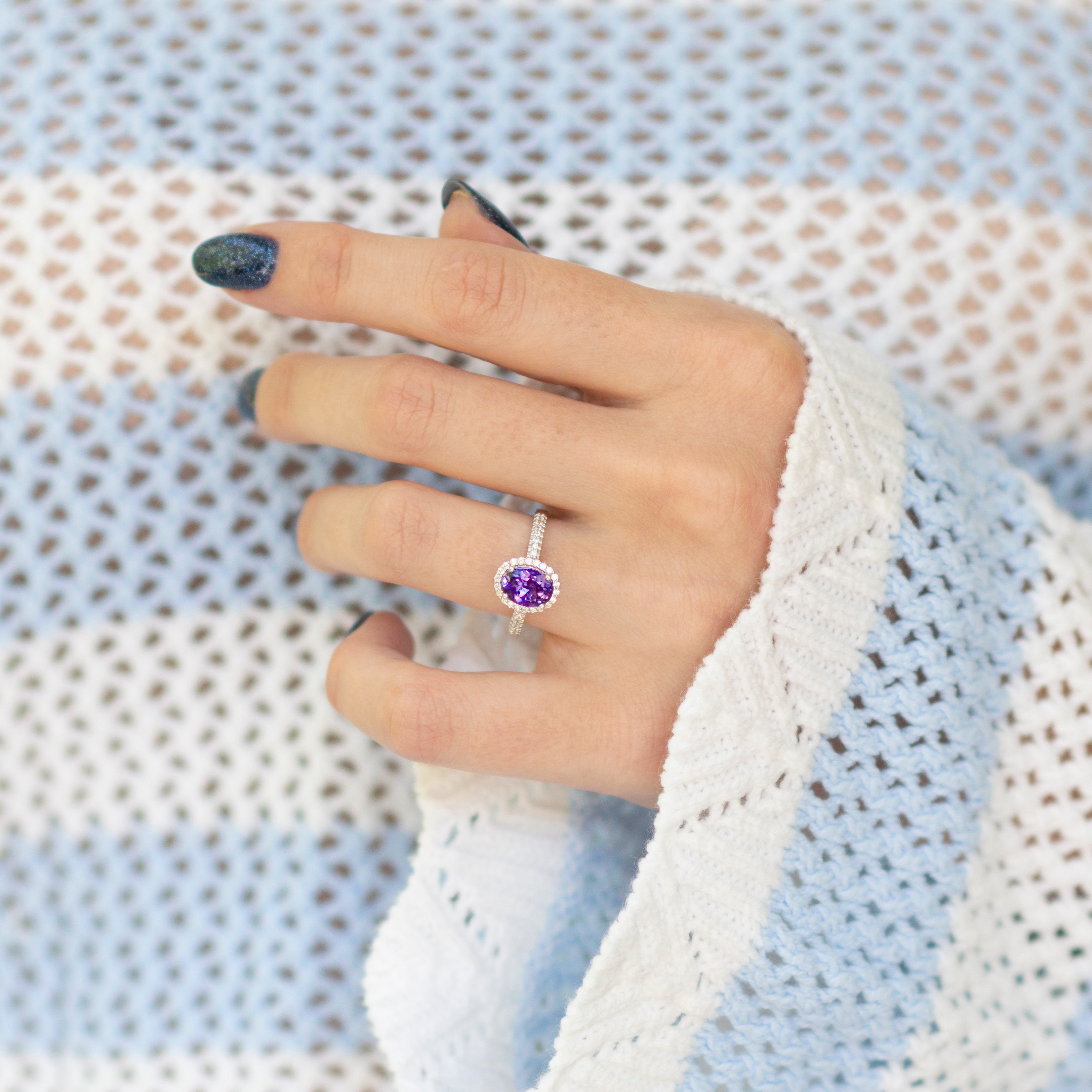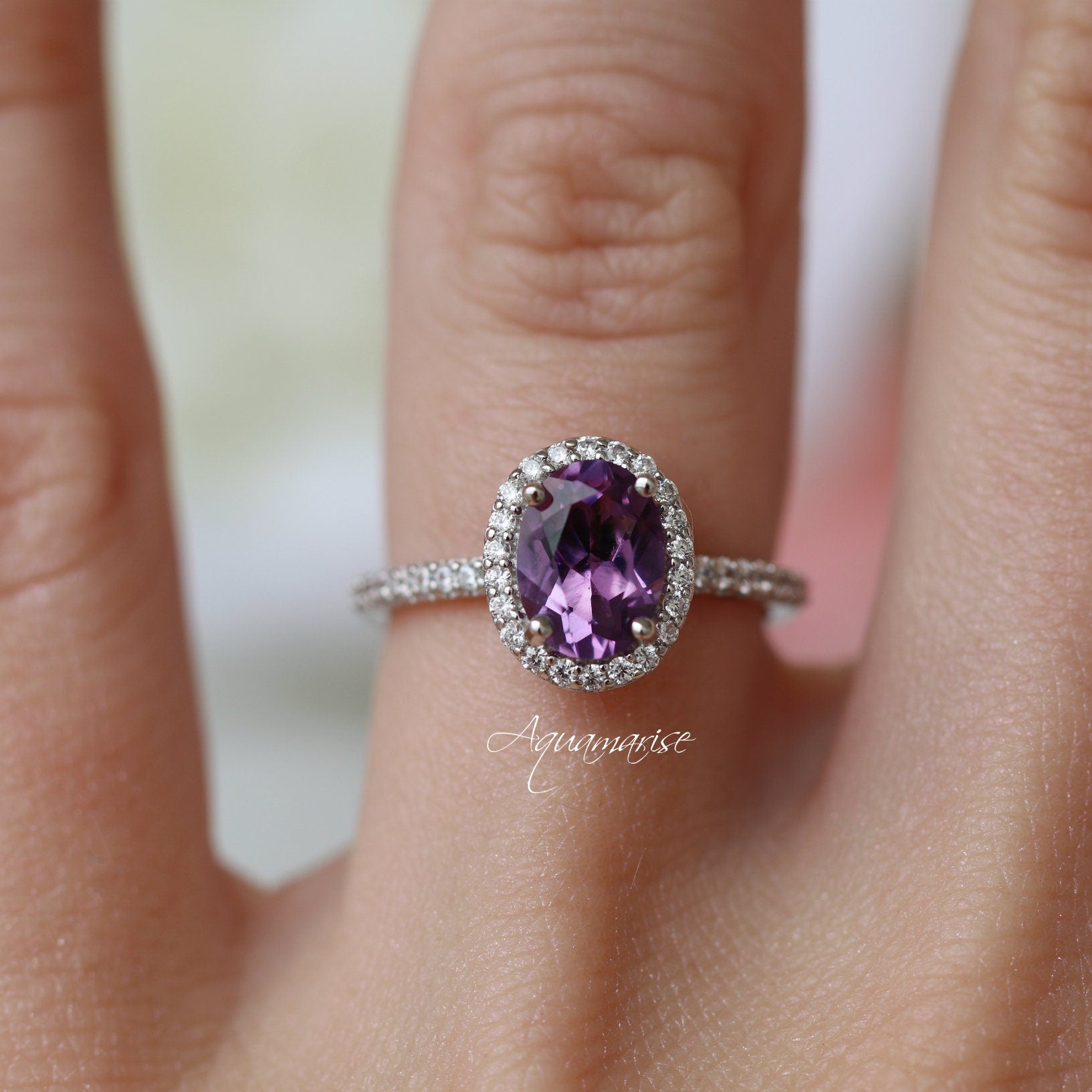 STUNNING. Even better than I thought it would be. Such a dainty and gorgeous ring. The perfect shade of amethyst too. AND it came in a cute ring case. Love this shop!!!