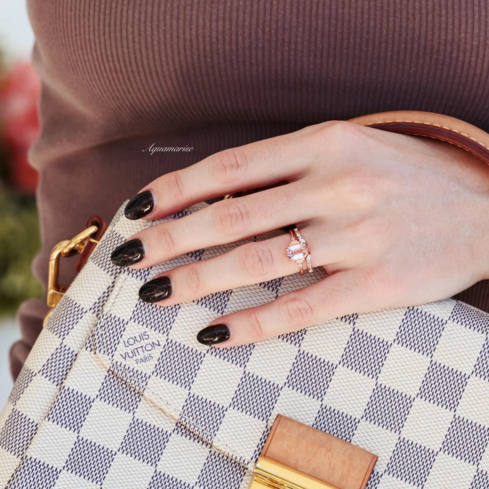 The Blush Pink Morganite Couples Ring Set, a timeless symbol of love and commitment crafted to commemorate the eternal bond between two souls. Designed with utmost care and precision, this exquisite set embodies the essence of tradition and modern elegance, seamlessly blending intricate detailing with the soft allure of morganite gemstones.
