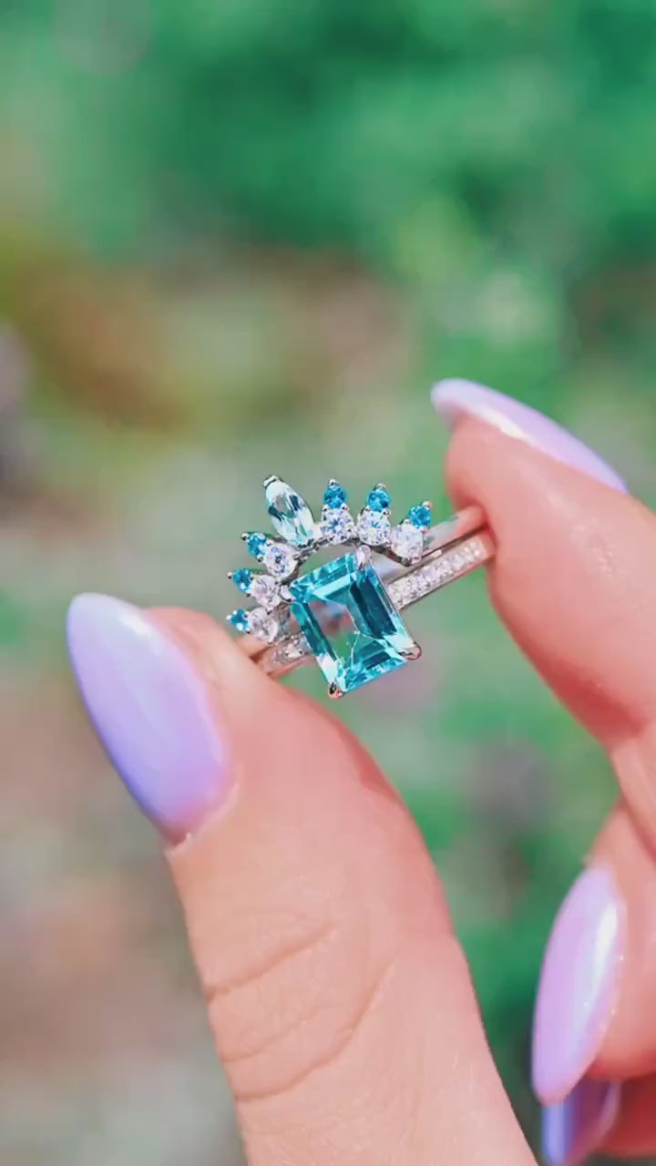 Aquamarine & Swiss Topaz Stacking Ring in Sterling Silver