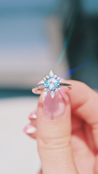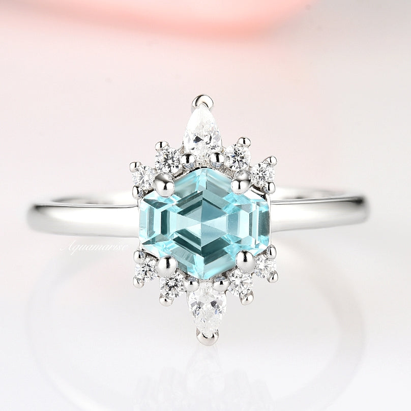 Hexagon Aquamarine Ring- Sterling Silver