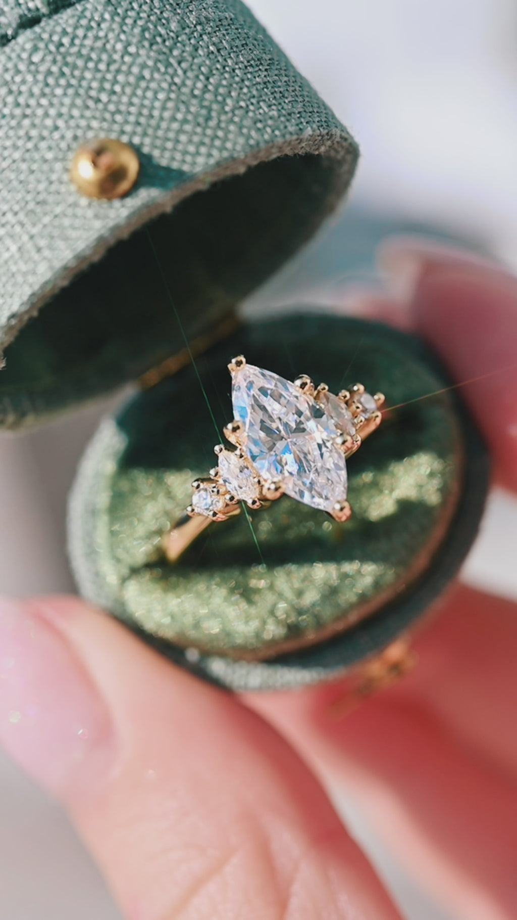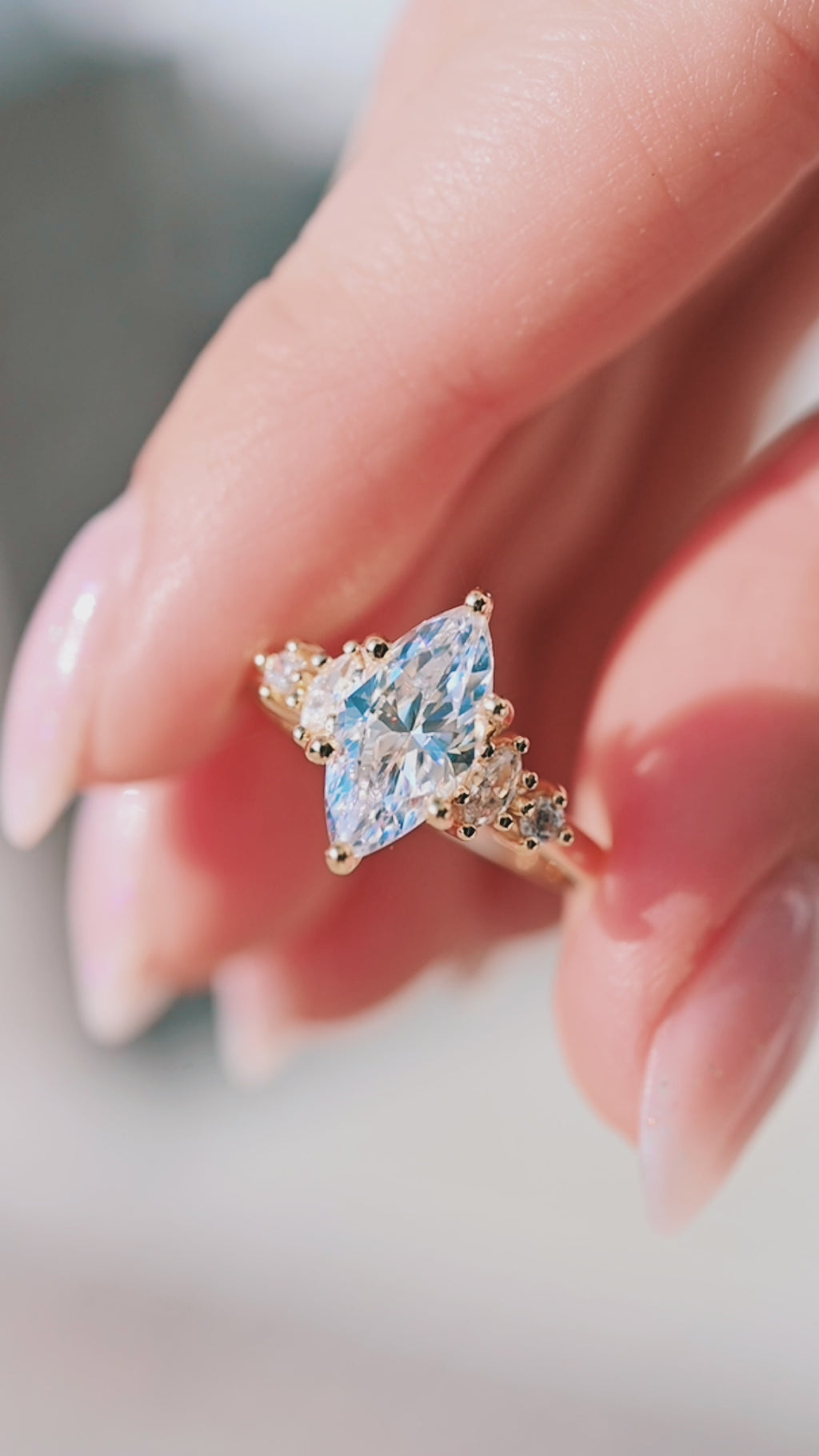 ► Center Stone: Lab-Grown Diamond (IGI Certified) ► Shape / Cut: Marquise ► Stone Size: Approx. 6.0 × 12.0 mm ► Carat Weight: ~1.7 ct (may vary slightly) ► Color: D ► Clarity: VVS ► Hardness: 10 (Mohs Scale) ► Accent Stones: Lab-Grown Diamonds ► Certification: Includes IGI Certificate of Authenticity with unique serial number