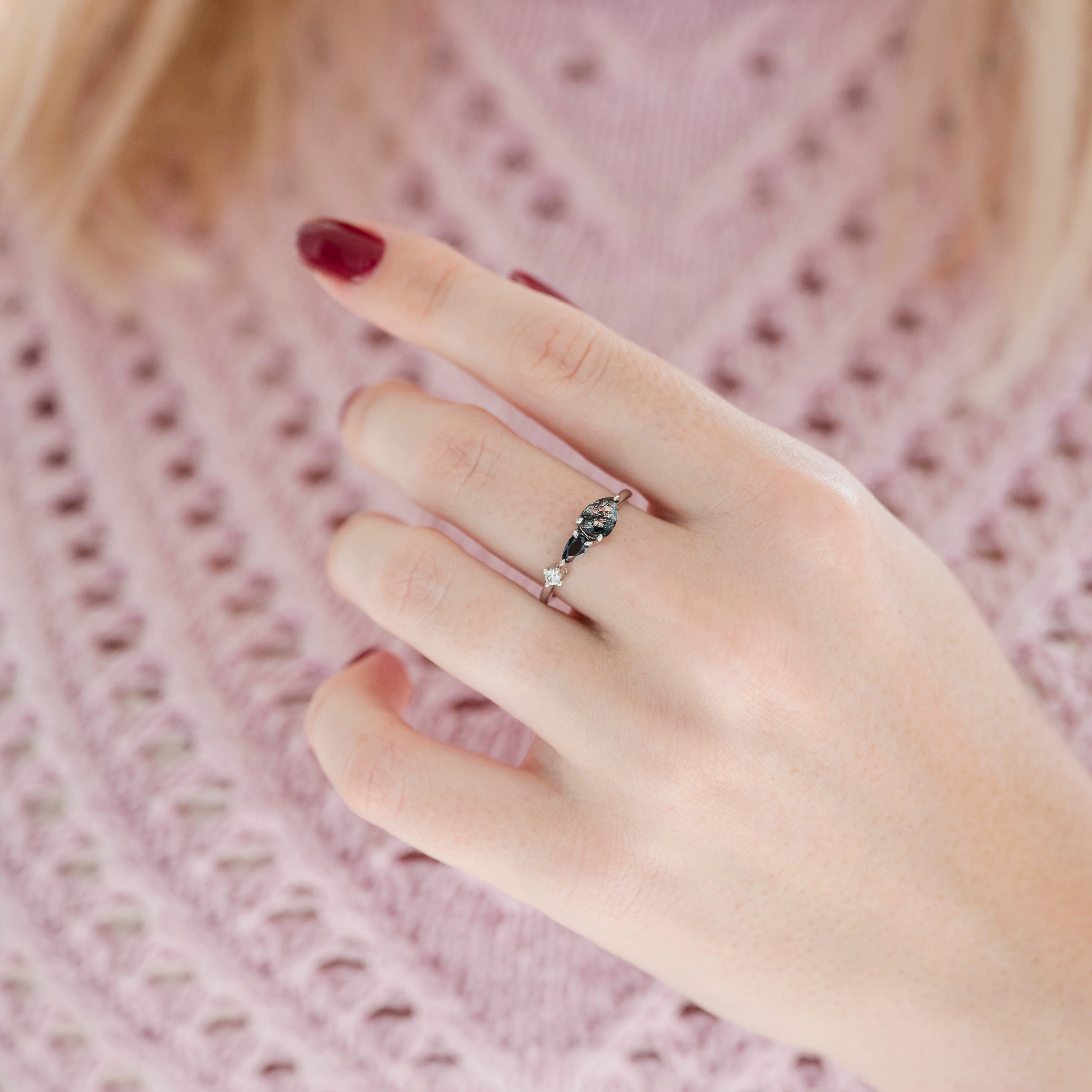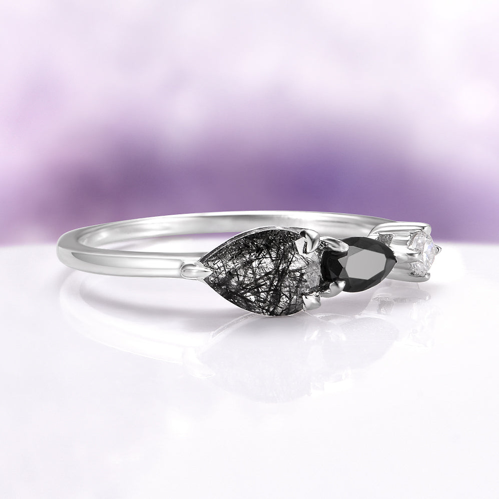 Rutilated Quartz & Black Onyx Ring in Sterling Silver