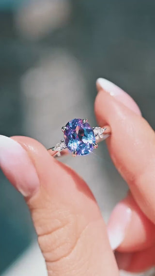 Oval Cut Alexandrite Engagement Ring in Sterling Silver