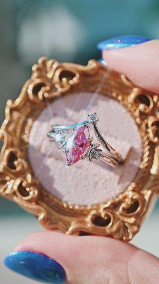 Pink Moissanite Crescent Moon Engagement Ring Set in Sterling Silver