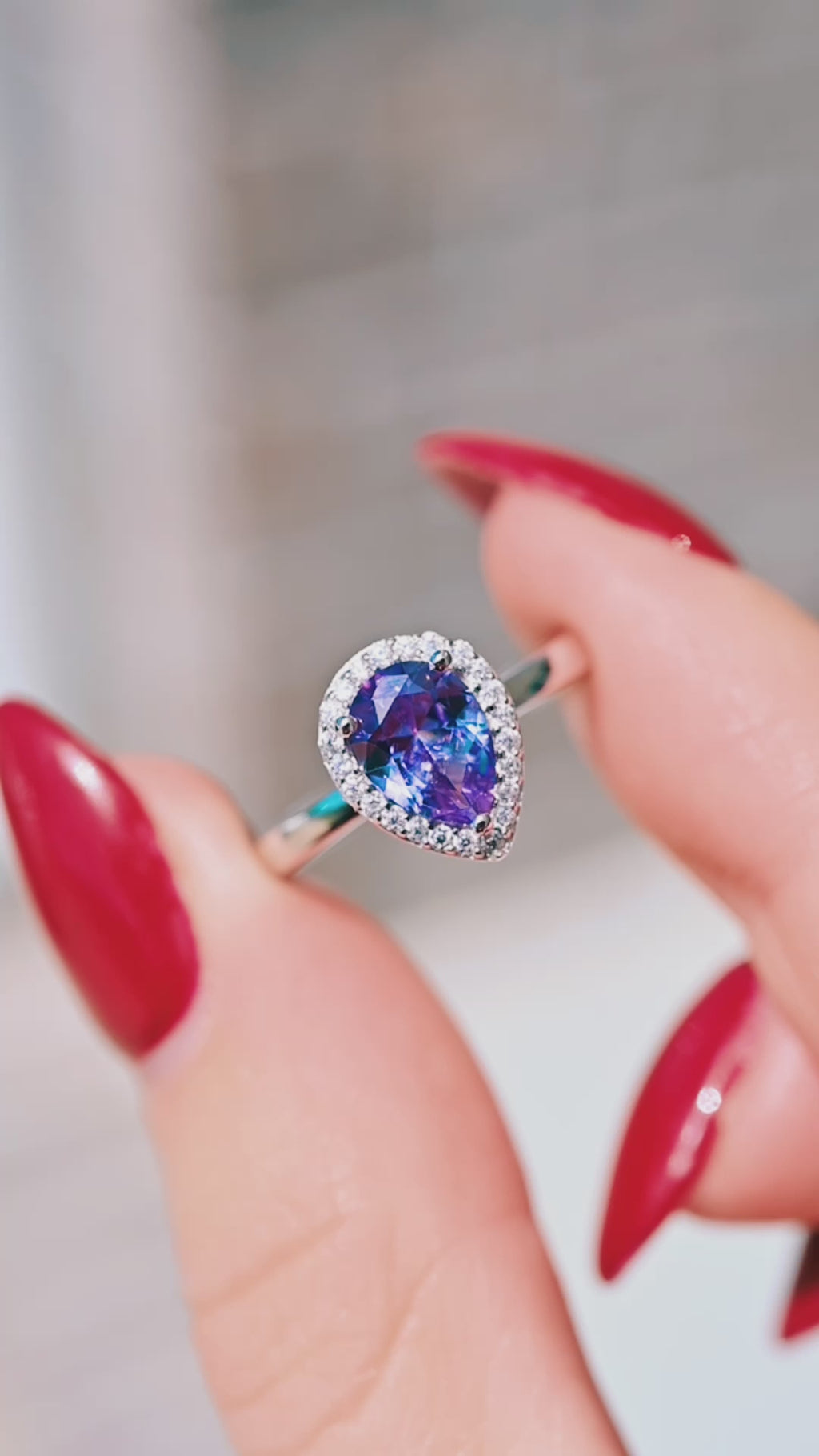 Center Stone: Pear Cut Alexandrite (Lab-Created)