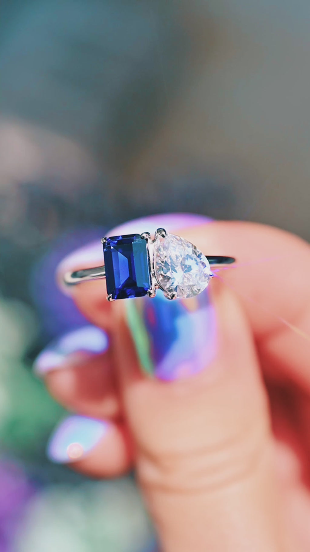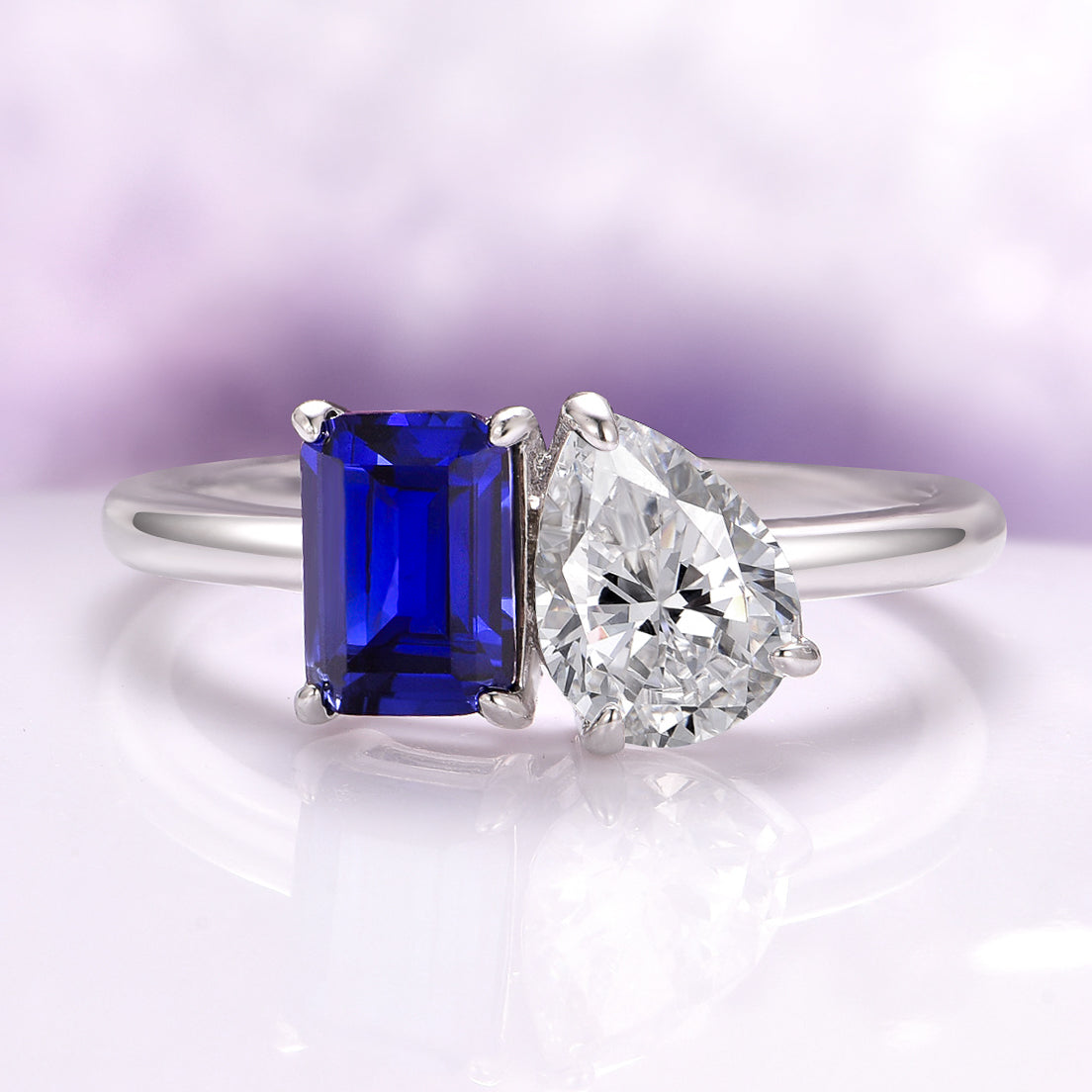 Toi Et Moi Blue Sapphire and Simulated Diamond Ring in Sterling Silver