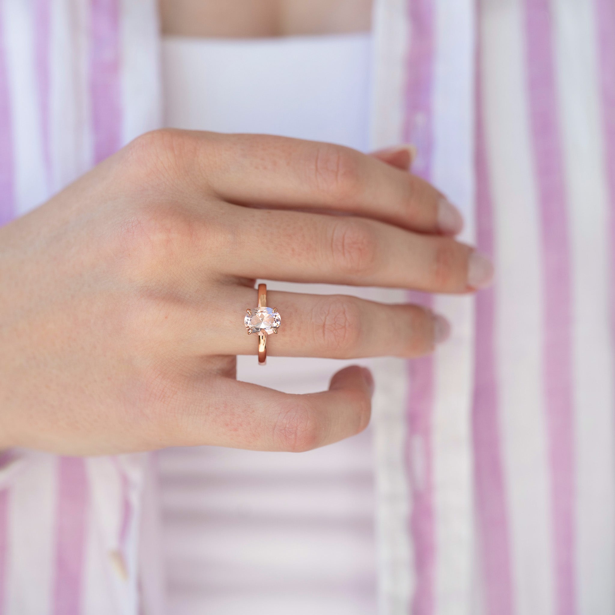 Oval Solitaire Morganite Ring- 14K Rose Gold Vermeil