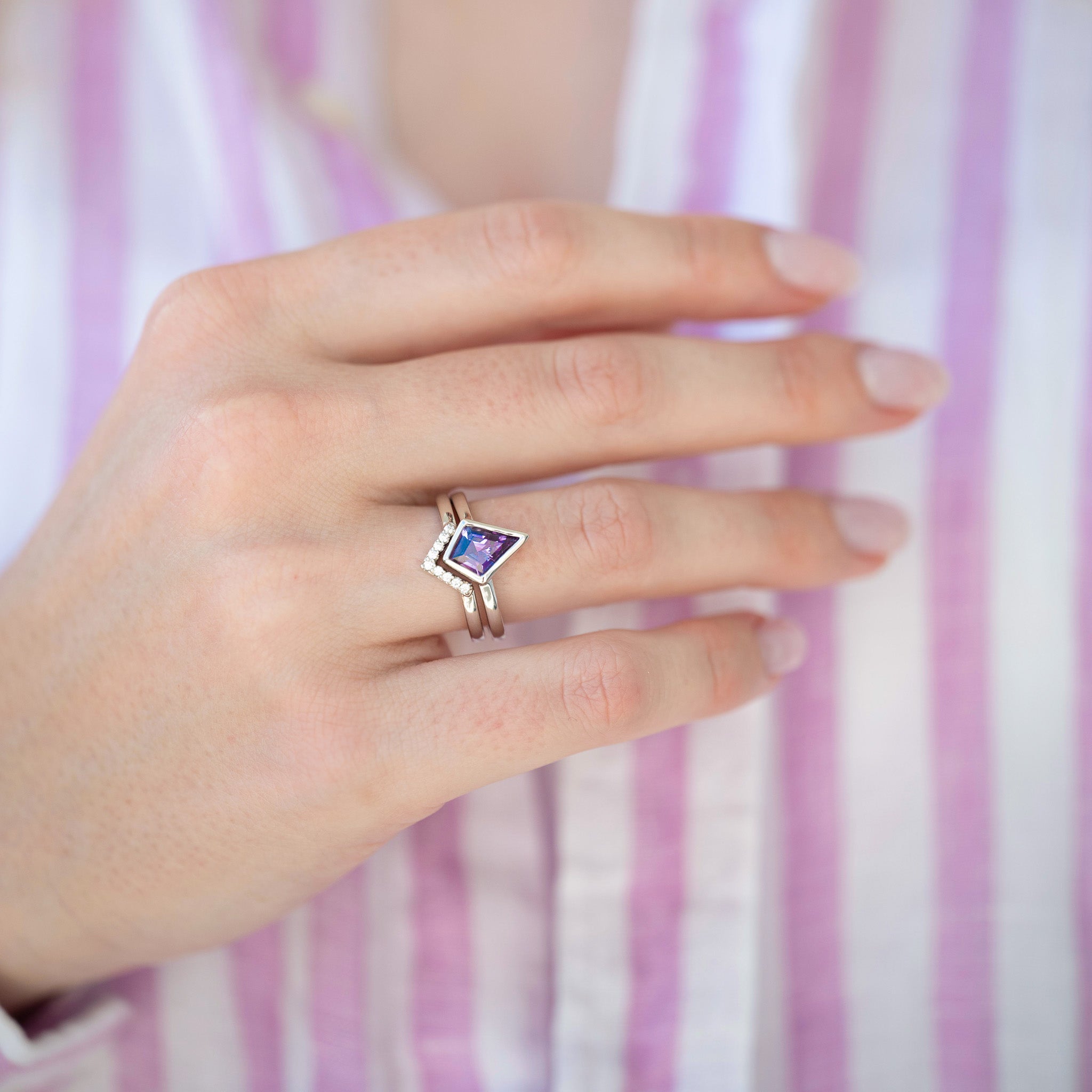 Kite Cut Alexandrite Bezel Engagement Ring Set in Sterling Silver