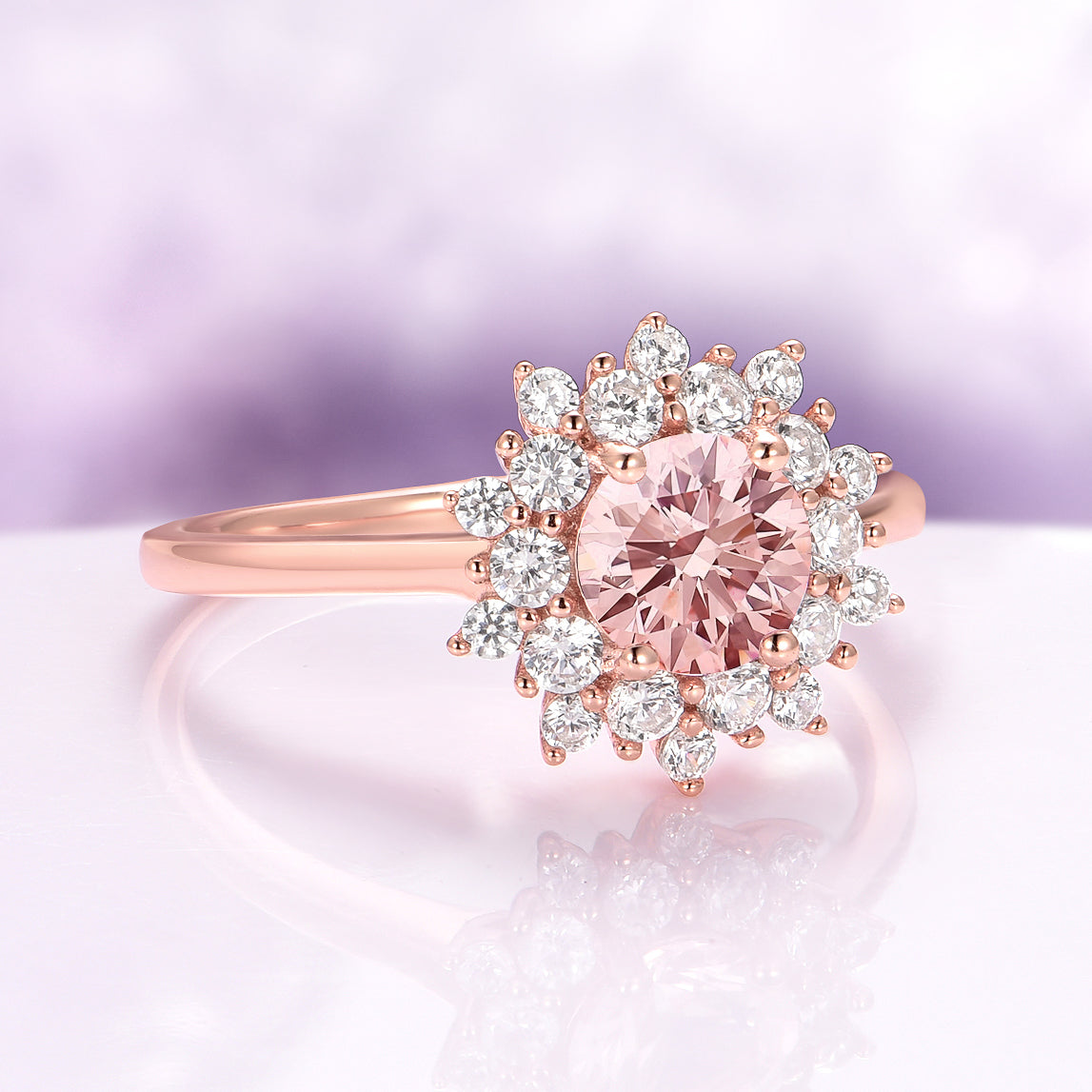 Graceful, feminine, and timeless — the Avery Snowflake Morganite Ring captures the beauty of winter’s first snowflake in a delicate halo design. Featuring a round-cut peachy-pink simulated Morganite, this dainty ring shimmers with soft, romantic hues that evoke warmth and love.