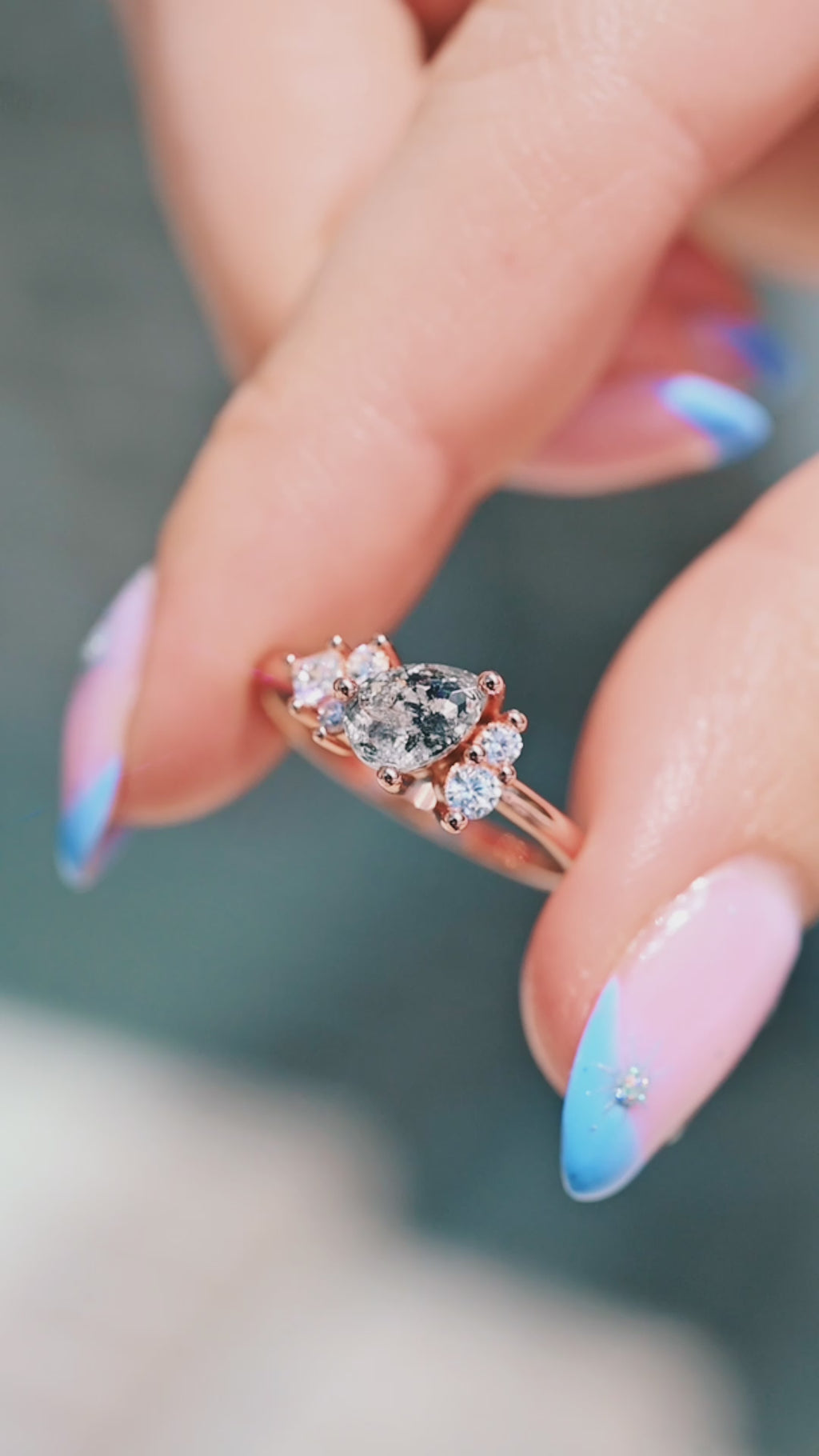 The Galaxy Raw Salt & Pepper Diamond Ring is an ethereal symbol of love—crafted for those who seek something as rare and cosmic as their own story. This handcrafted design features a natural Herkimer Diamond with mesmerizing salt and pepper inclusions that shimmer like tiny galaxies suspended in time.