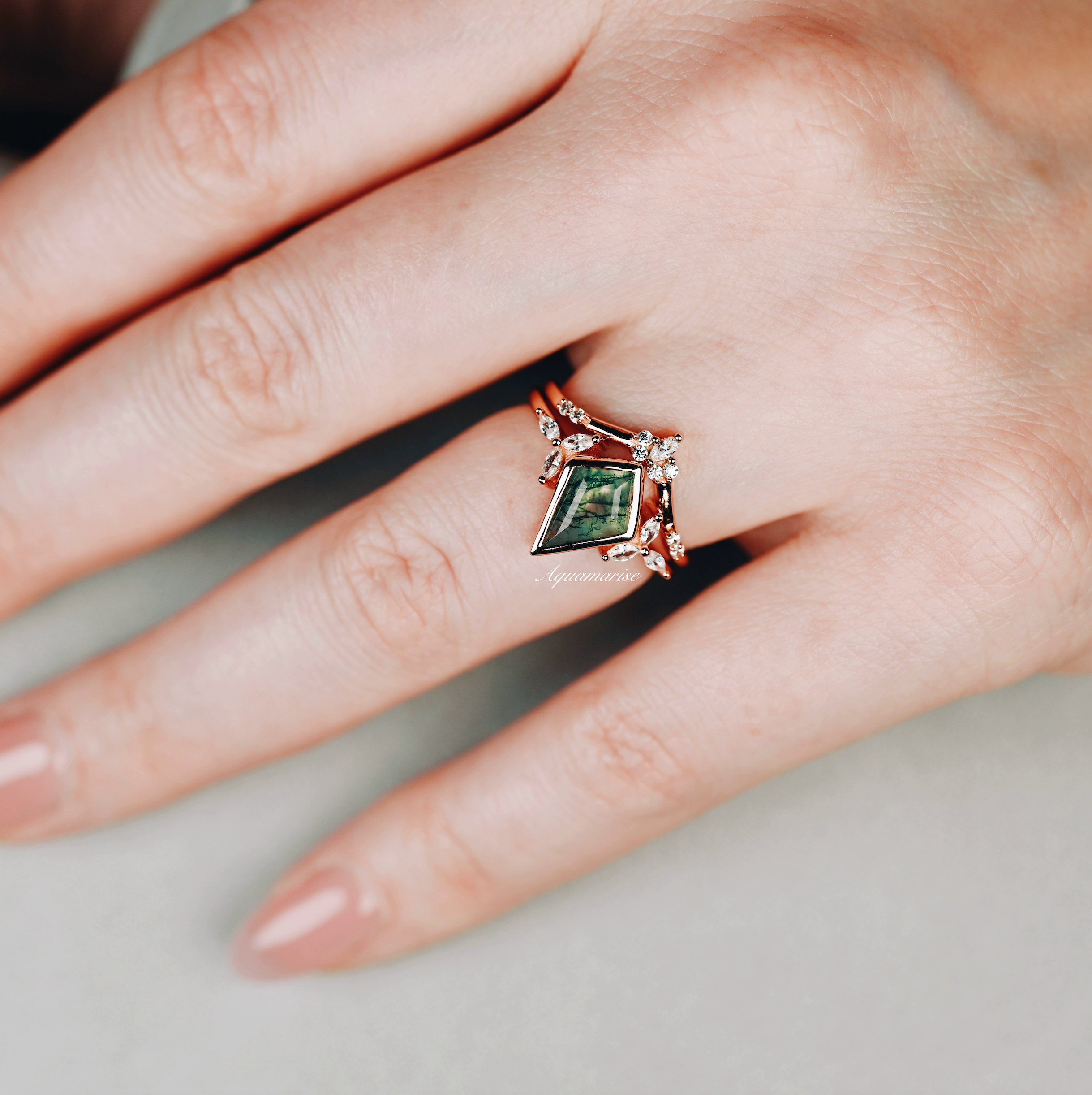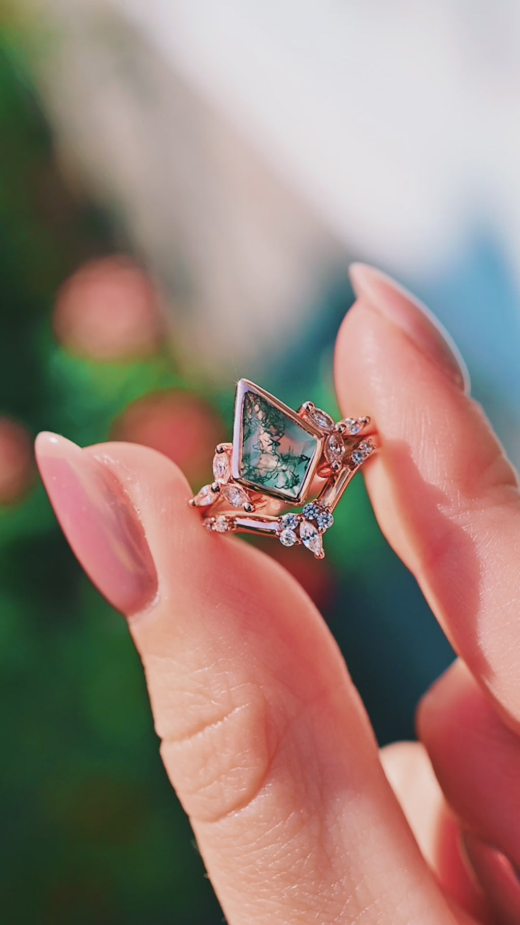 This moss agate ring set makes a thoughtful engagement ring, promise ring, or special occasion gift, offering both symbolic meaning and timeless design.