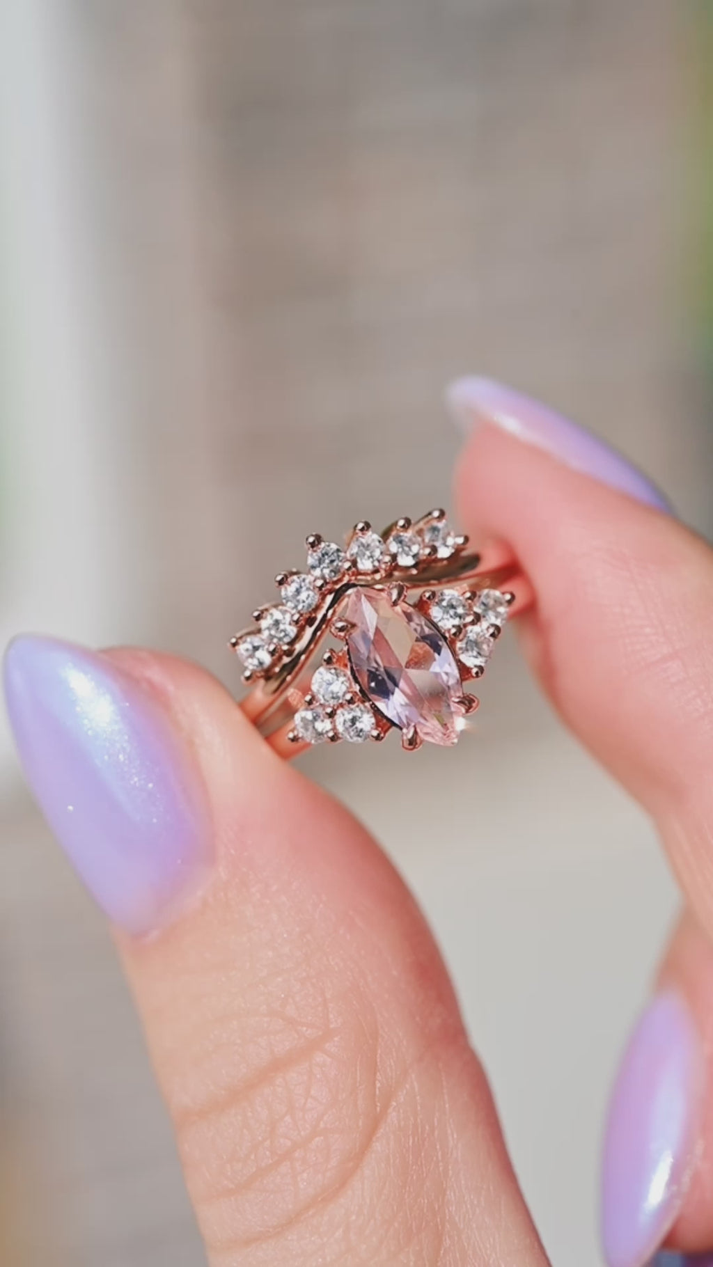 Celebrate love with this delicate and timeless marquise cut morganite ring, designed in a minimalist style for everyday elegance. The soft peach-pink tones of the simulated morganite are enhanced by a warm 14K rose gold vermeil finish, making it the perfect choice for an engagement ring, promise ring, or anniversary gift.
