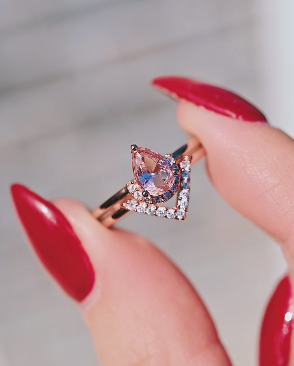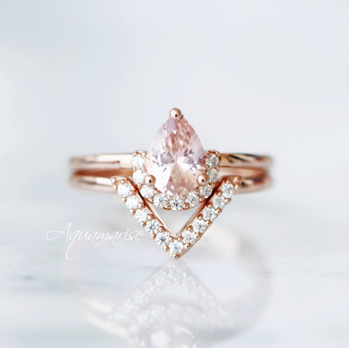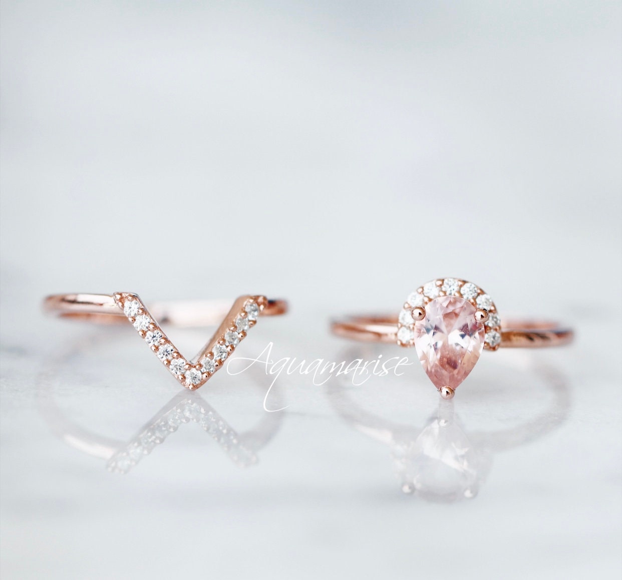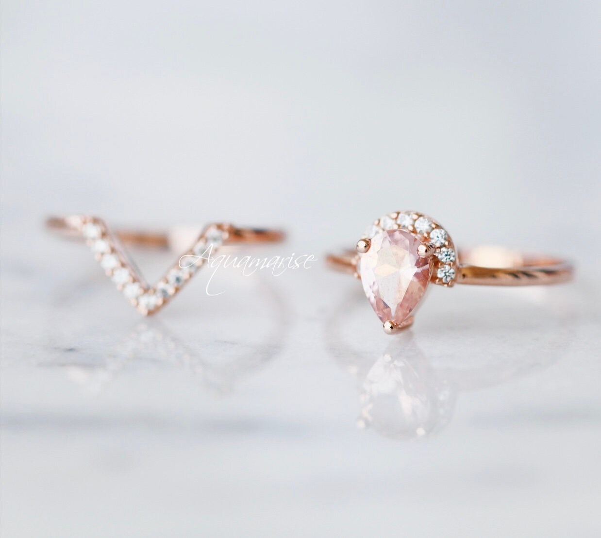 Aria Morganite Ring Set- 14K Rose Gold Vermeil