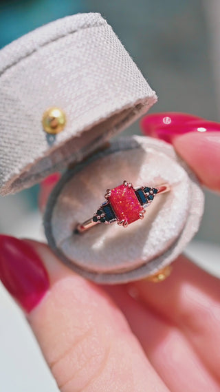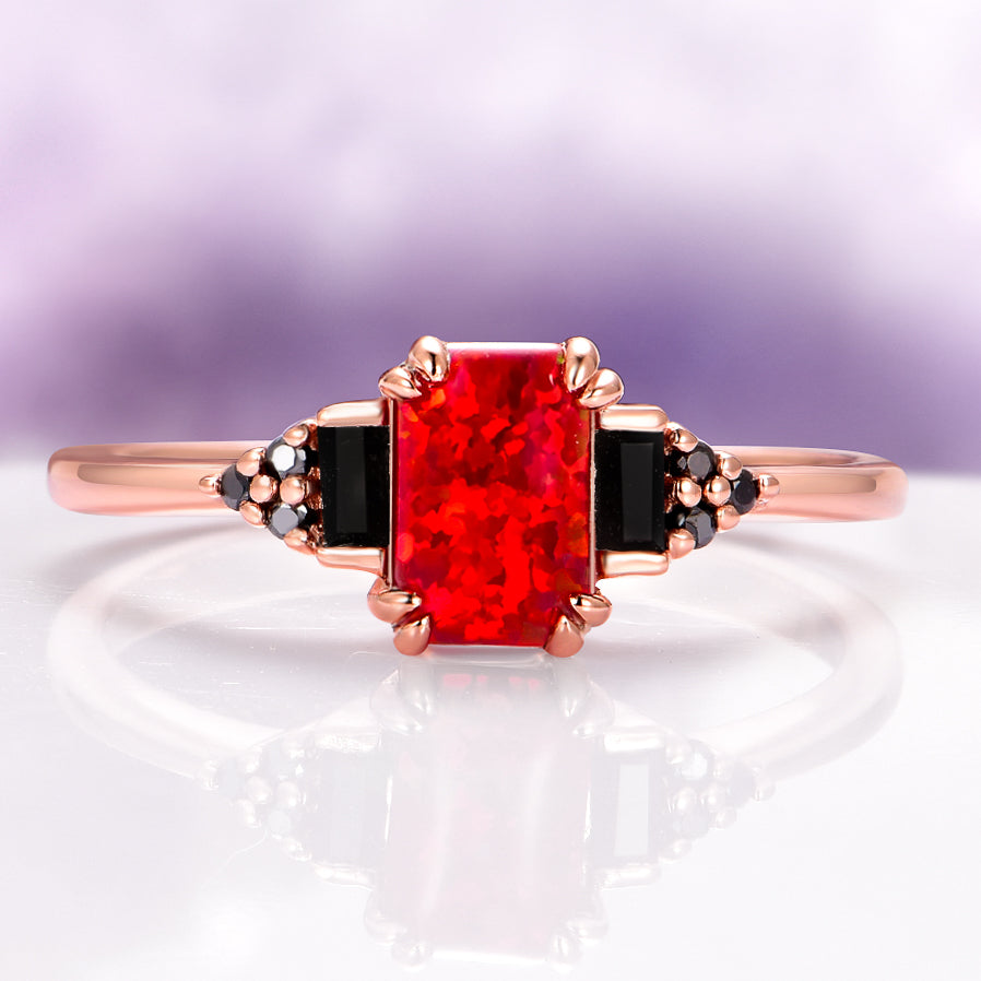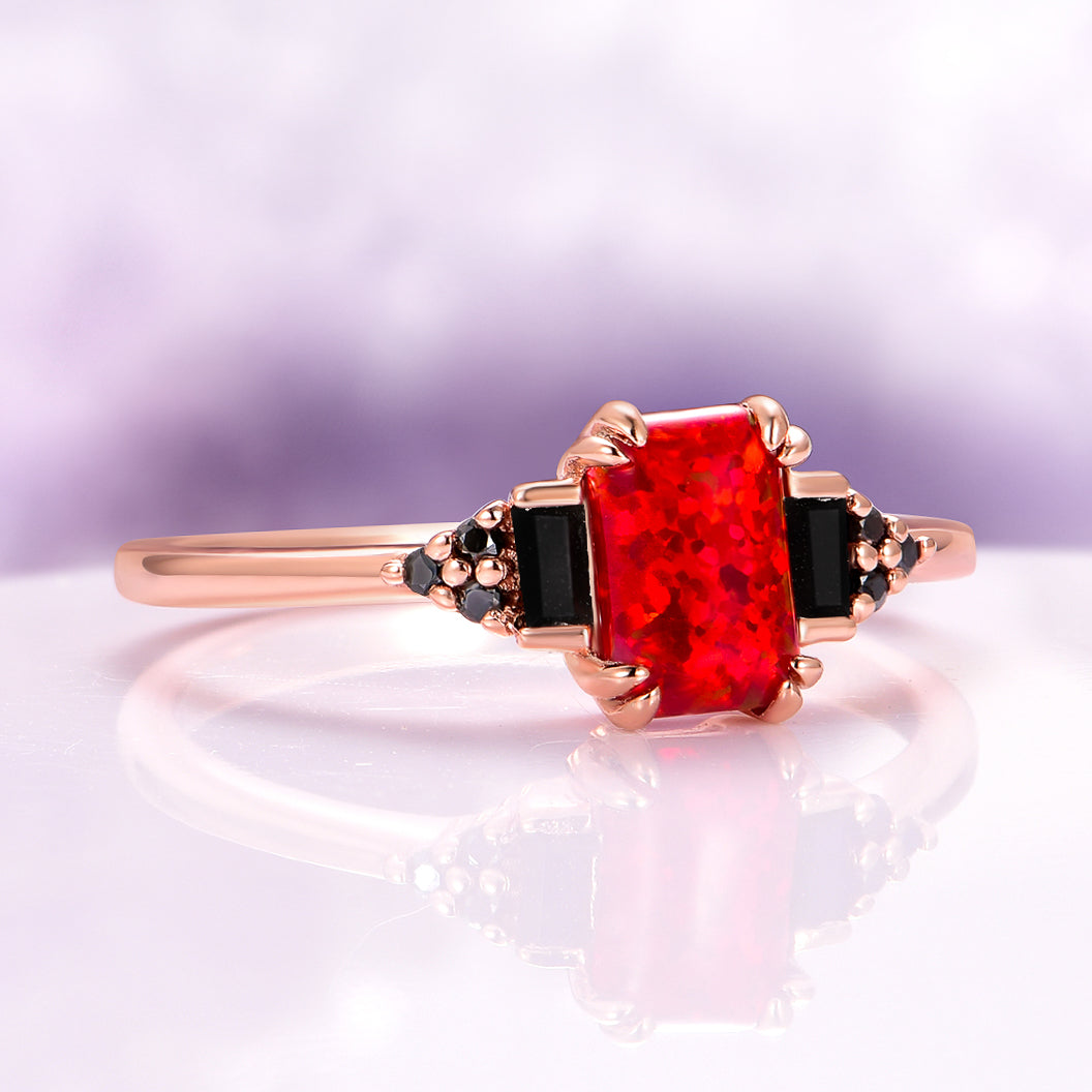 Red Fire Opal & Black Onyx Ring in 14K Rose Gold Vermeil