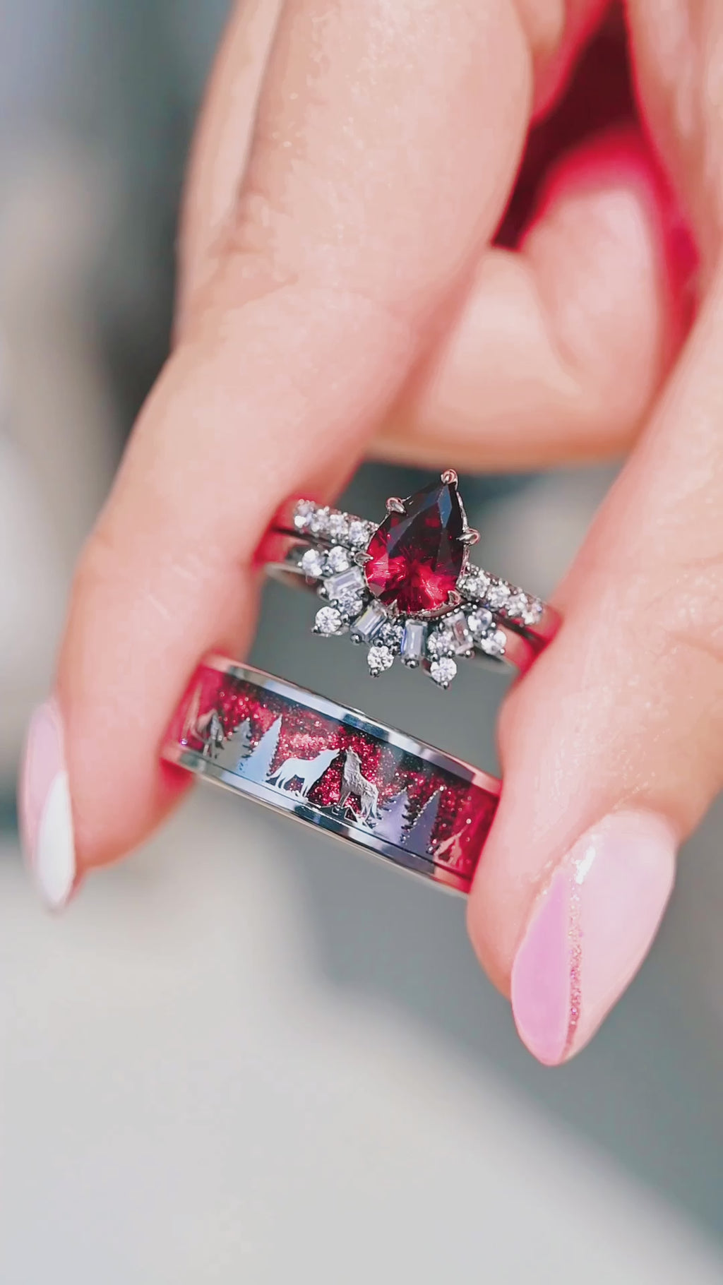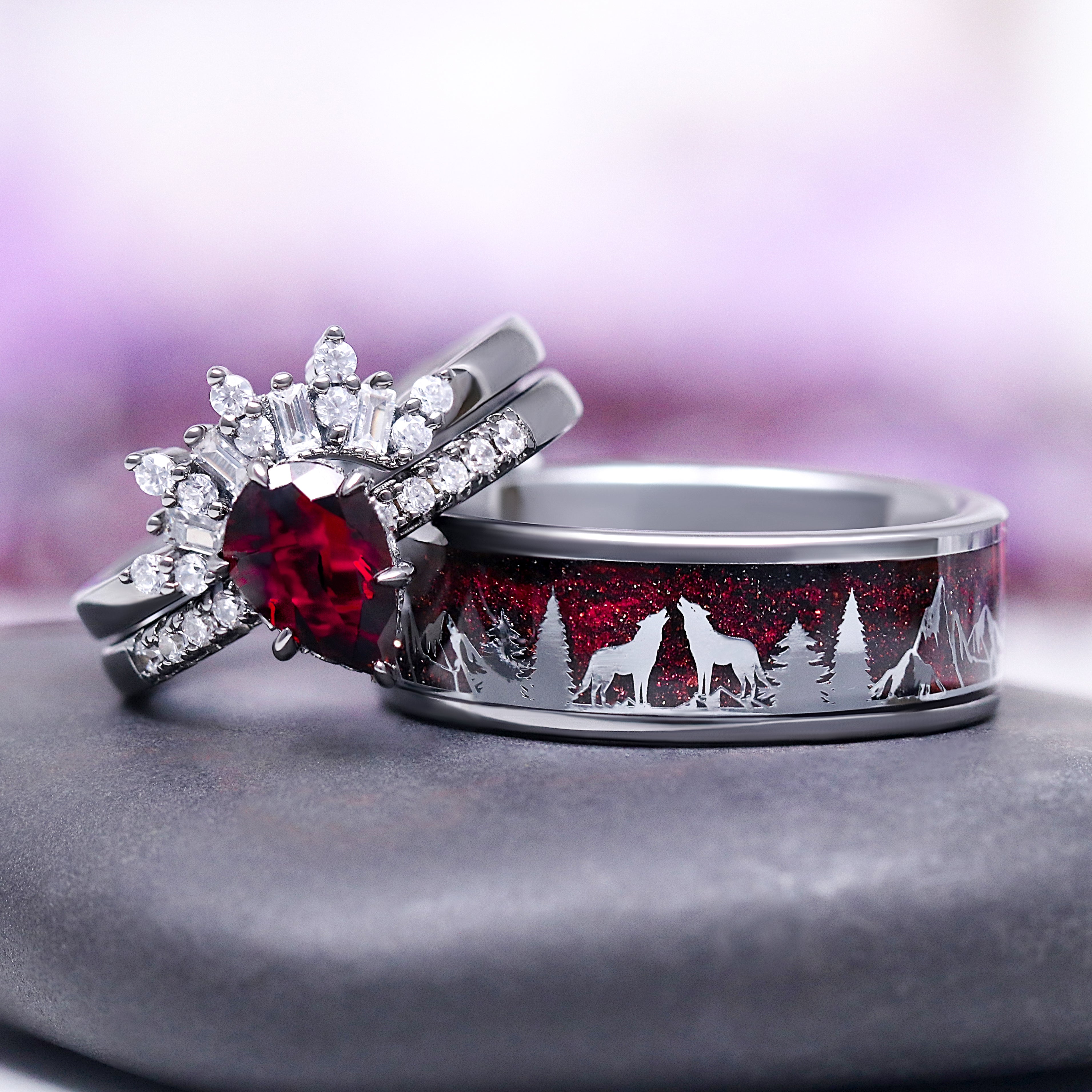 Red Garnet Couples Ring Set (Vampire Inspired)
